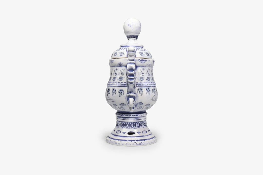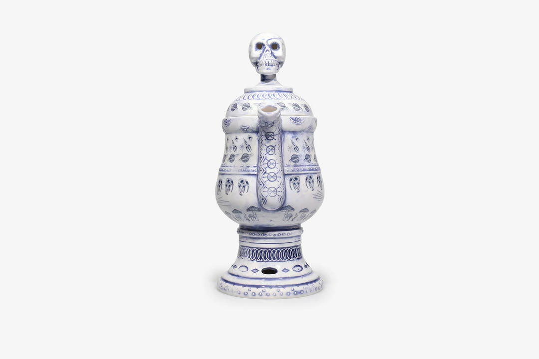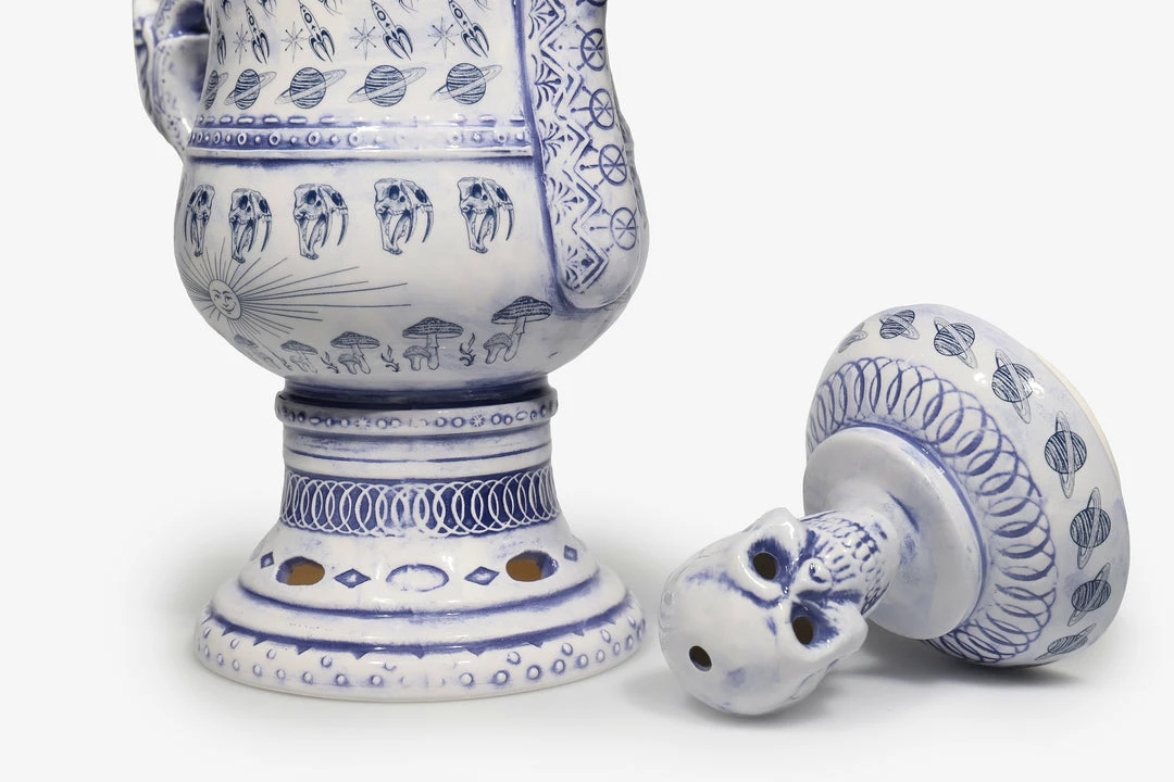 World famous for his intricate Tattoo designs, Dr. Woo collaborates with Neighborhood applying his artwork to a range of garments and homeware. This incense chamber is as intricate as it gets with the ceramic outer covered head to toe in Dr. Woo’s fine line deigns.