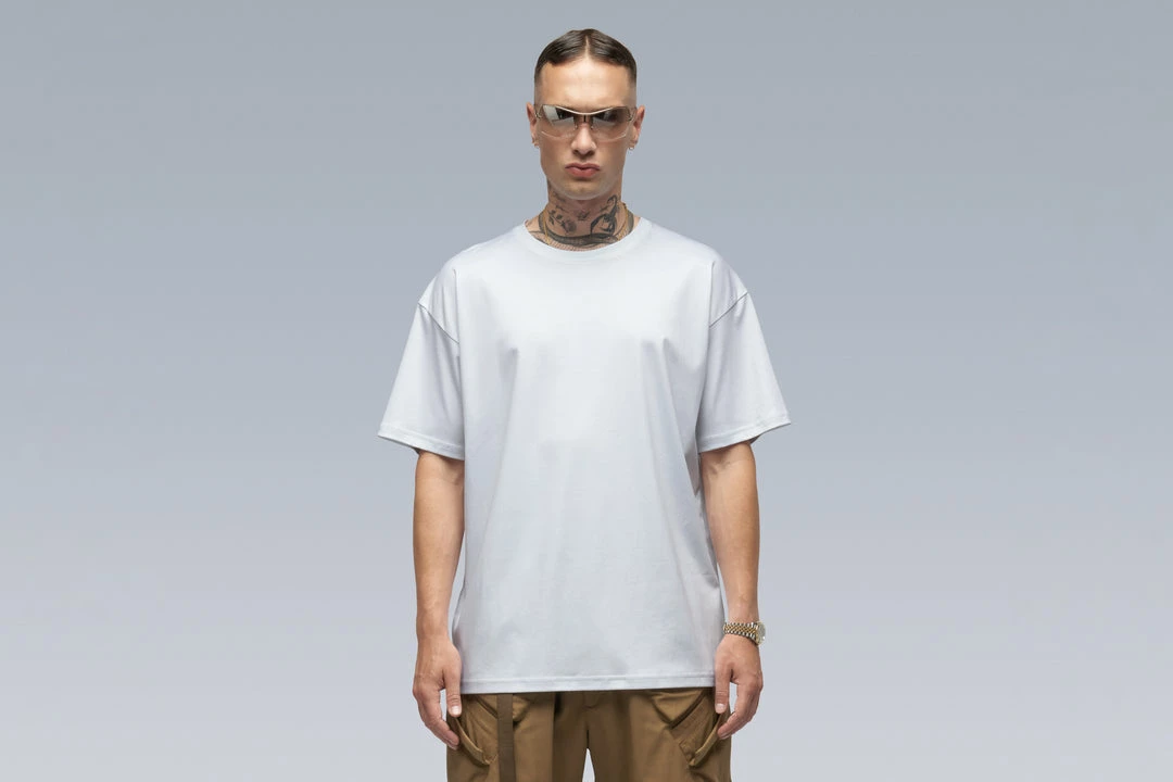 Acronym drop B lands at HANON proving once again its futuristic function first design & high quality construction isย unlike anything else. The S24-PR-A is a 100% mercerized cottonย short sleeve T-shirt that features a screen-printed typeface graphic designed by David Rudnick on the back.