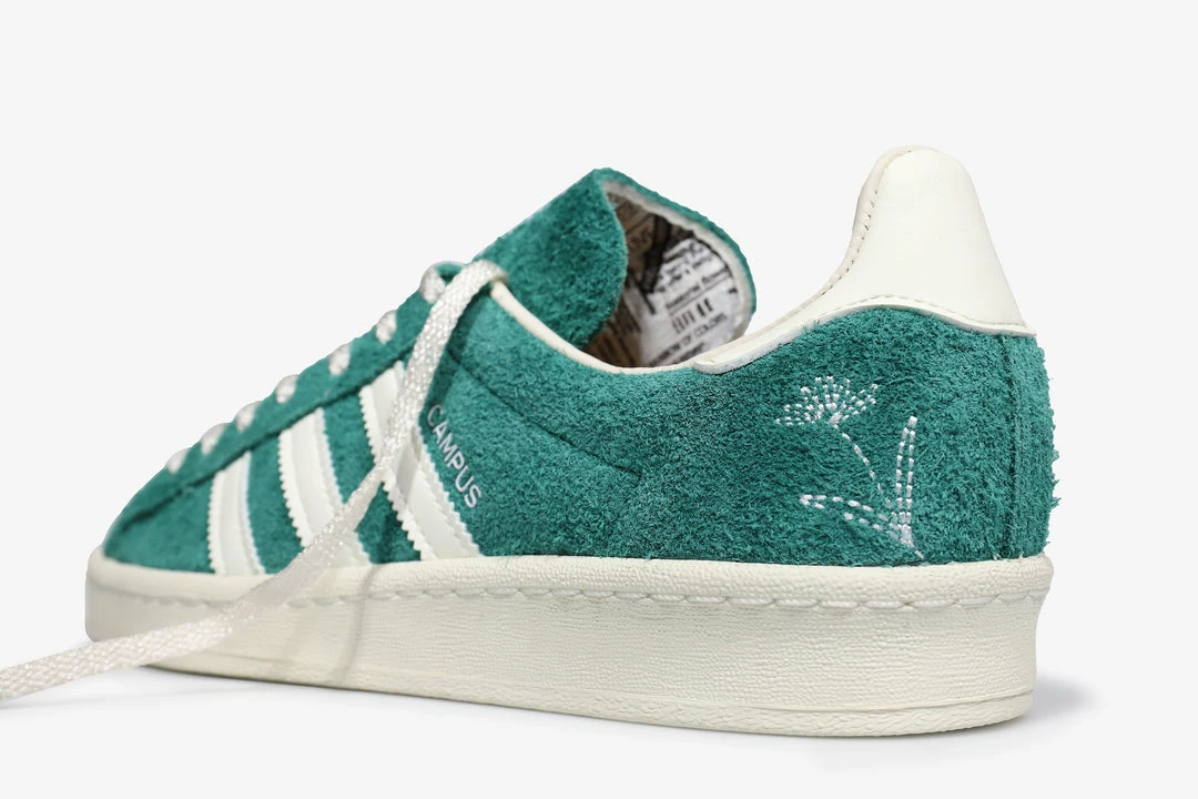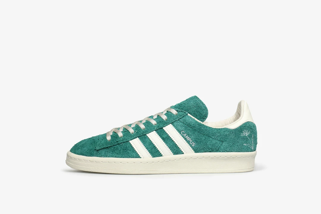 Court-inspired, street-admired. Give a nod to old-school ballplayers and their style in these classic adidas Campus 80s Shoes. The clean, minimalist design make them easy to wear anywhere. This pair puts the spotlight on London’s famous flower markets, this is made immediately obvious with the flower printed insole that that bursts out of the shoe on closer inspection. More subtle hints to the theme can be found on the upper, with a minimal flower graphic embroidered on the heel. In addition to that, the hairy suede is a smart design choice that emulates the natural and tactile feel of a flower market and the flowers themselves. As usual, this lightweight shoe is backed up with a rubber sole and outsole unit, with a traction pattern that hasn’t changed since its court days.