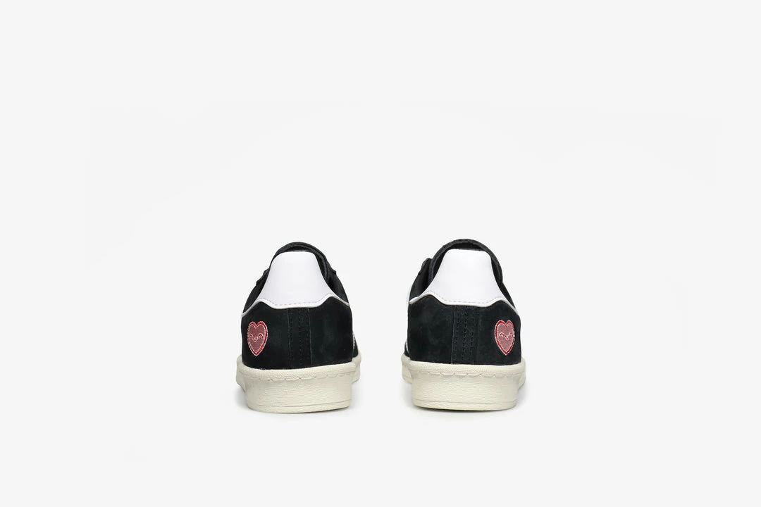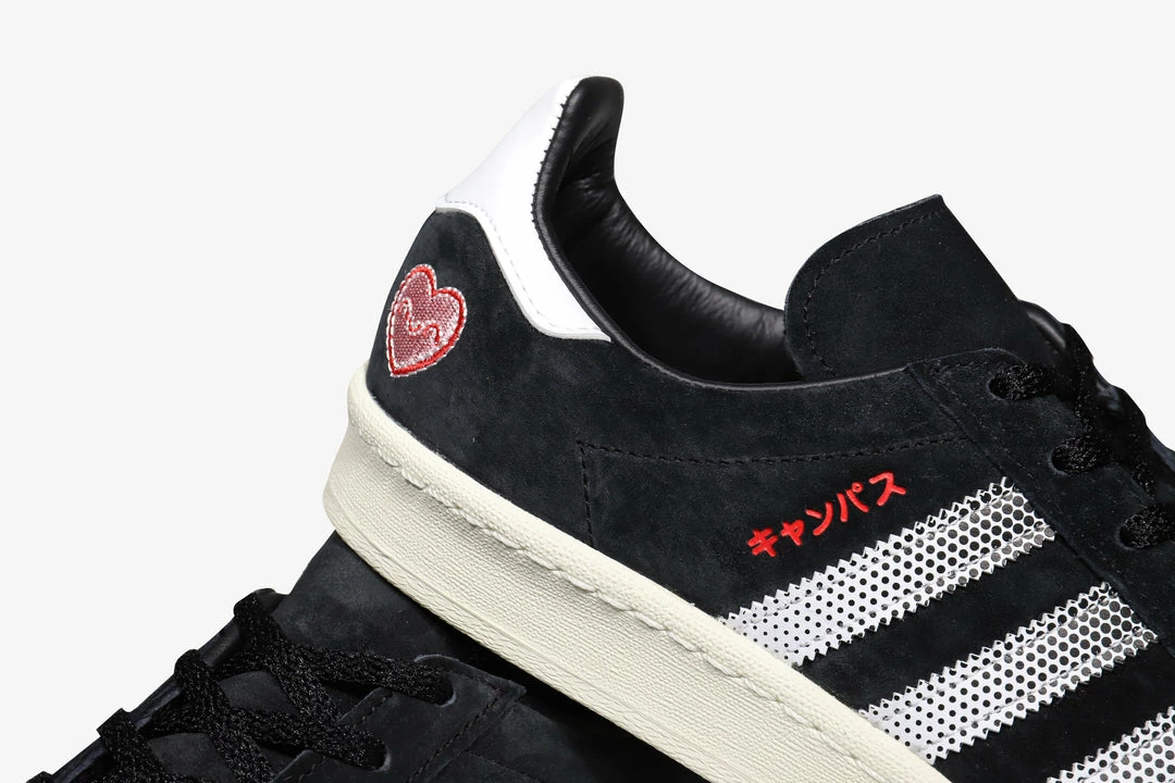 Born on the basketball court, the adidas Campus shoes have long been a favourite of subcultures around the world. From skaters to scenesters, they’re an underground icon. And that is whyΒ adidas dedicated this pair to another vibrant scene β manga in Tokyo. Black and white colours nod to the artwork that you love. Soft nubuck stays true to the original and the premium leather looks just as luxe as it feels. An embroidered loveheart patch at the heel supplies a kawaii finish.Β