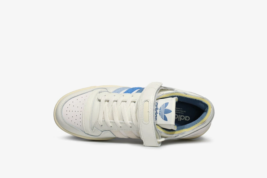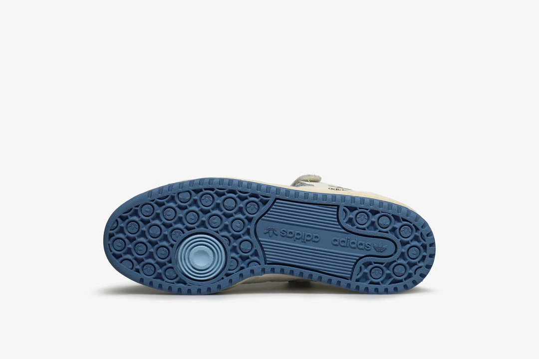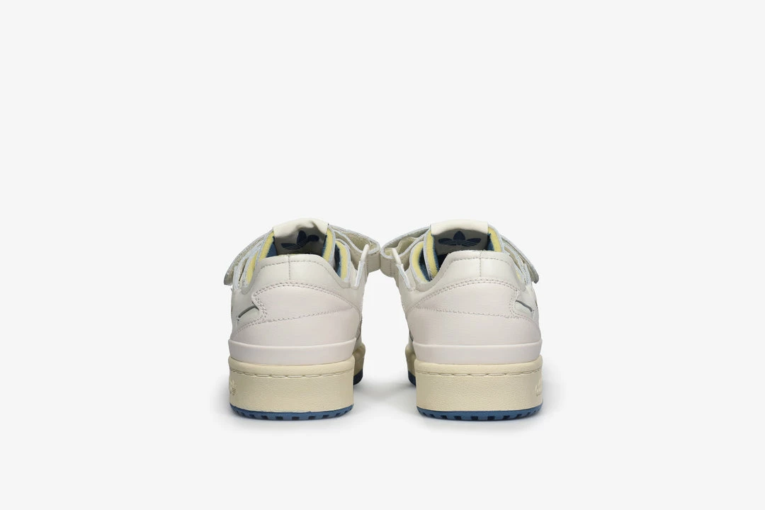A giant on the hardwoods of decades past, these shoes have transformed into a champion of everyday style. This adidas Forum 84 Low features aΒ premium white leather upper paired with tonal blue textured suede 3-stripes. The exposed foam collar and tongue play up the nostalgic vibe withΒ stitched details creating aΒ DIY look.. Every original detail is here, from the X-ankle strap to the perforated toe and the rubber outsole. A golden trefoil below the collar seals the deal.