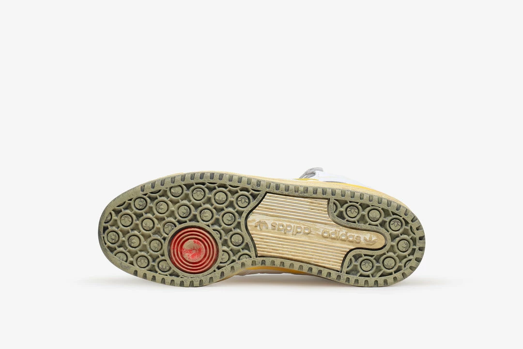 These adidas Forum trainers offer a vintage vibe straight out the box. The worn-in look gives them a retro aesthetic bringing these shoes back from1984 to the future without any damage or wear. All the iconic elements areΒ in there from the X-ankle and padded tongue to the beautifully-layered upper. The premium leather comes predominantly in white withΒ yellowΒ accents providing a welcomed pop of colour as well as that classic 3-stripe look that never gets old.