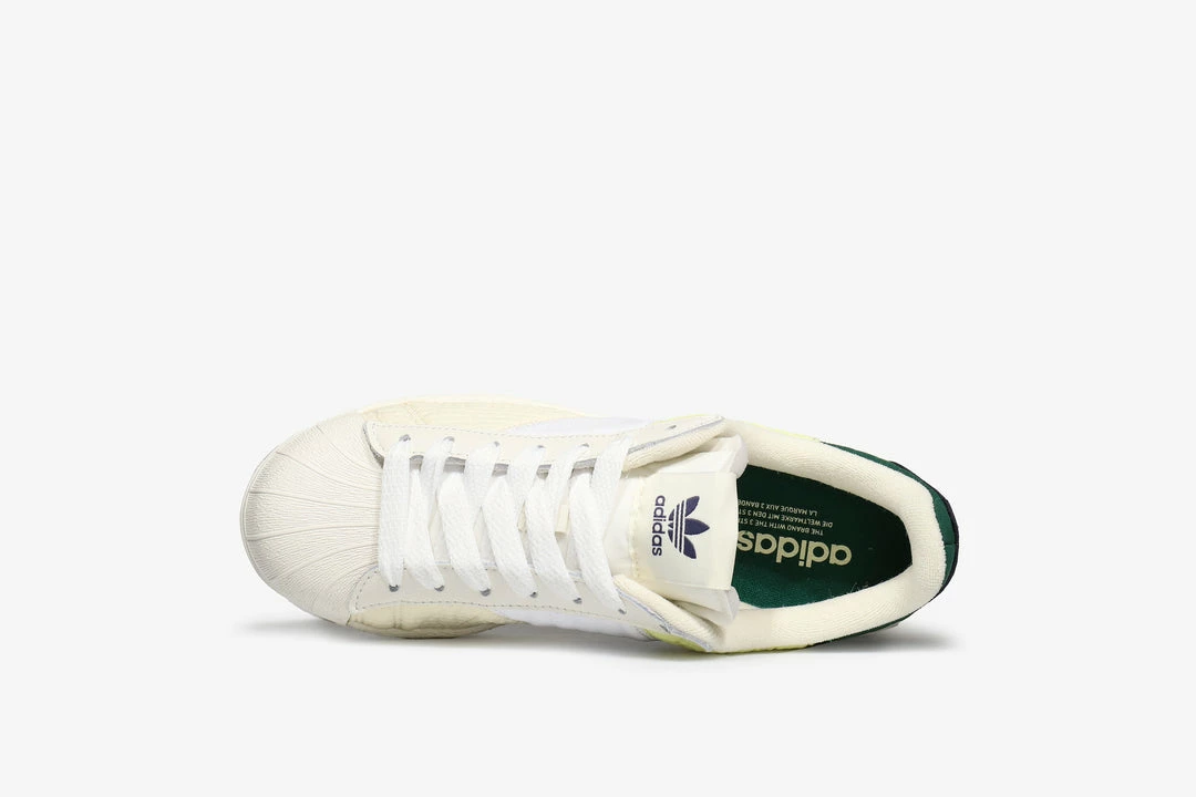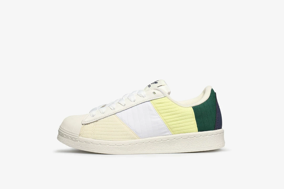 These men’s adidas Superstar shoes have a patchwork-pattern upper inspired by handcrafted Japanese patchwork blankets. No 3-Stripes keep the iconic silhouette streamlined. Made in part with recycled content generated from production waste, e.g., cutting scraps, and post-consumer household waste to avoid the larger environmental impact of producing virgin content. 25% of the components used to make the upper are made with a minimum of 50% recycled content.