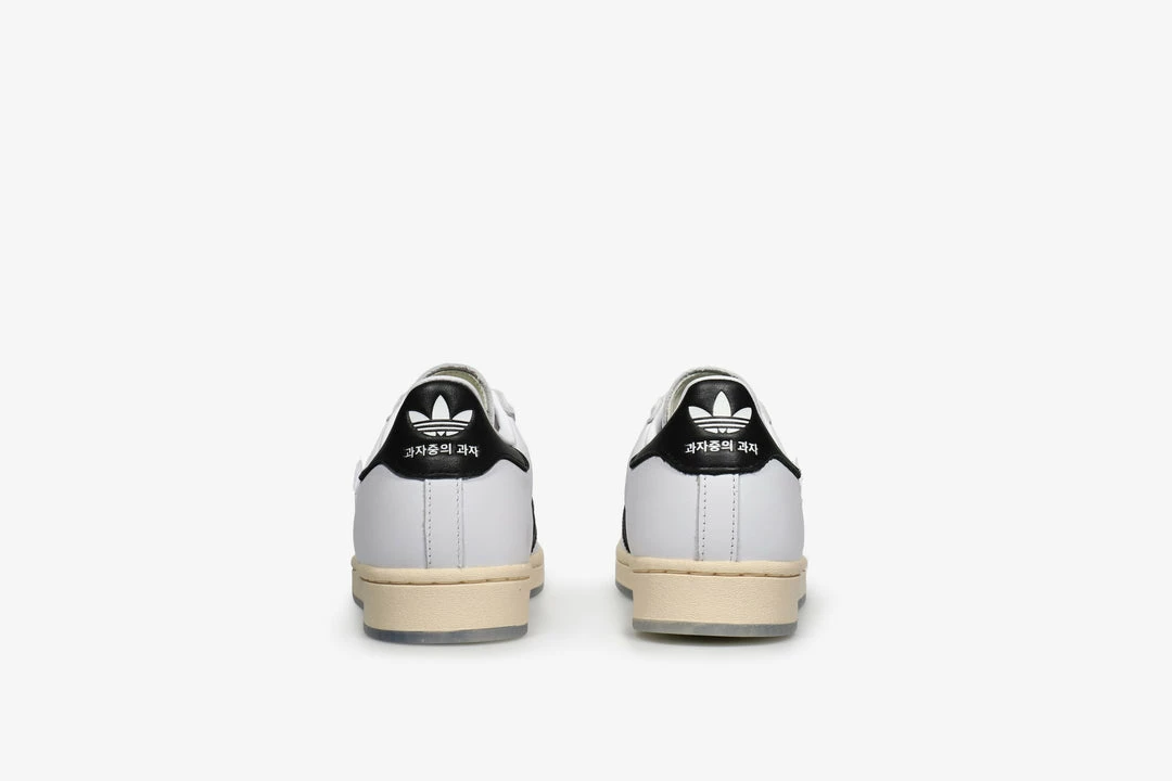The Adilicious seriesΒ sees adidas partner up with the most hyped, connected and beloved food spots in cities around the globe. For Seoul they collaborated with Taegeukdang on these adidas Superstar shoes. One of the oldest bakeries in the city, it’s never been afraid of change, always evolving while staying grounded and respectful of their own heritage. It make sense then that the shoes themselves are inspired by both traditionalism and our current cultural zeitgeist, featuring a removable Tyvek tear-away panel that reveals the OG adidas Superstar shoes black-and-white colourway. The translucent outsole showcases a graphic from a local artist.
