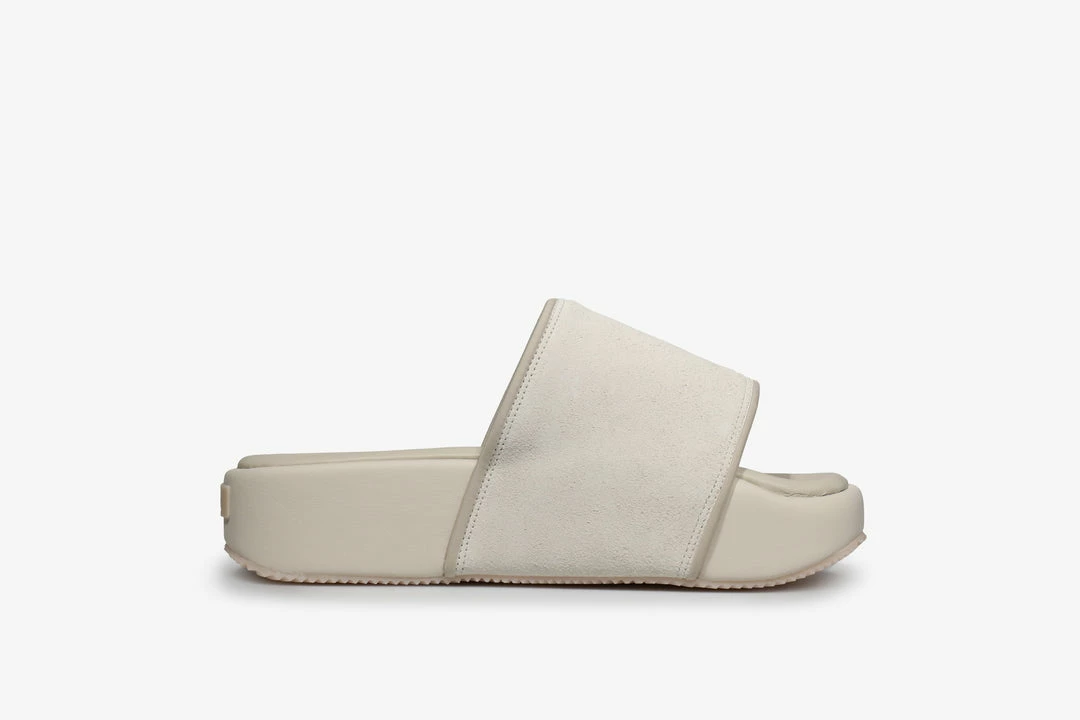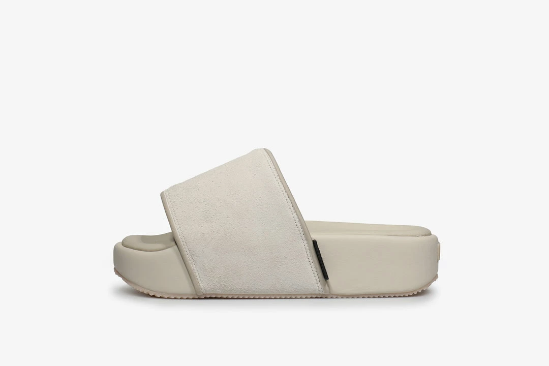 The adilette or slide depending on your parlance of preference has become a mainstay in the sporting world as well as being dependable everyday wear for anyone and everyone. Y-3 continue their fine form of taking classic adidas staples and transposing their own ideas mixed with adidas’s rich sporting DNA to create contemporary statements of design that fuses cutting-edge aesthetics with a premium build. These slides mark another home run when we consider that brief. Premium cuts of suede are applied to the chunky foot wrap, whilst a chunky bloated sole unit provides increased stance and a whole lot of comfort.