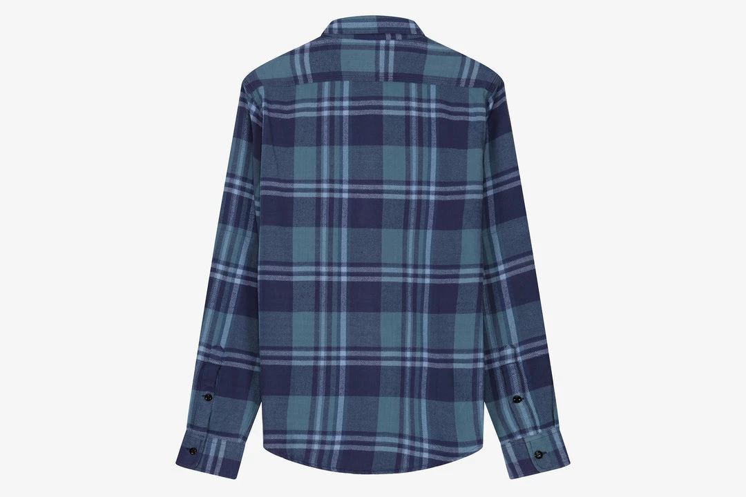 The “No Flap Flannel” is a heavyweight 100% cotton shirt that has two chest pockets and a few hidden details. The collar features hidden snap buttons, the elbow area is reinforced and there is an added secret internal chest pocket.