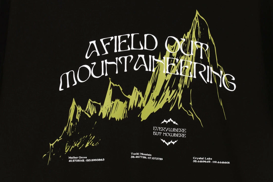 Afield Out are back at HANON with their AW22 collection providing everything you need and more to survive the winter weather in the great outdoors. Once again Afield Out leave nothing to be desired applying stunning graphics to high quality garments and more… The Grove Tee is crafted using 100% cotton and features neck ribbing, a tubular construction, and double needle hems. A large screen-printed mountain graphic is applied to the front. The bottom of the shirt includes a exterior woven label.