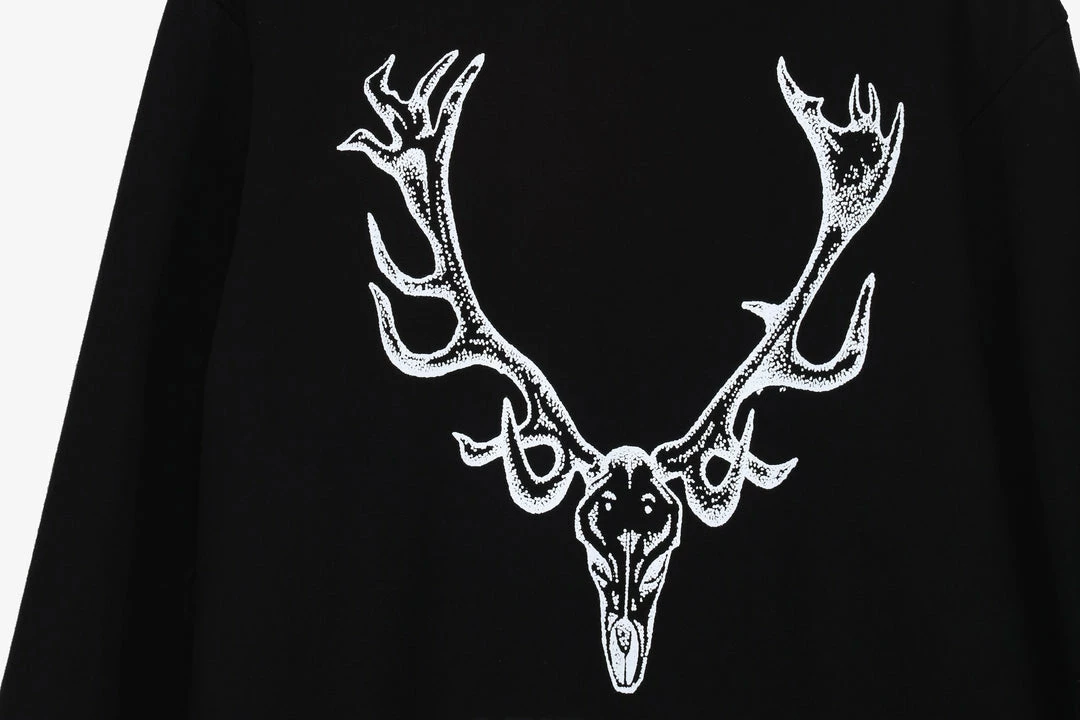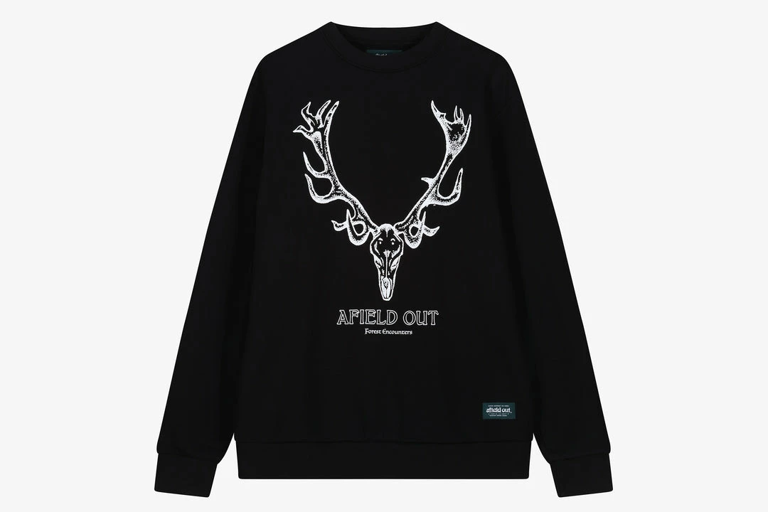 Afield Out are back at HANON with their AW22 collection providing everything you need and more to survive the winter weather in the great outdoors. Once again Afield Out leave nothing to be desired applying stunning graphics to high quality garments and more… The Hart Crewneck is a 14 oz heavy weight crewneck sweatshirt with a stag head screen-printed graphic.