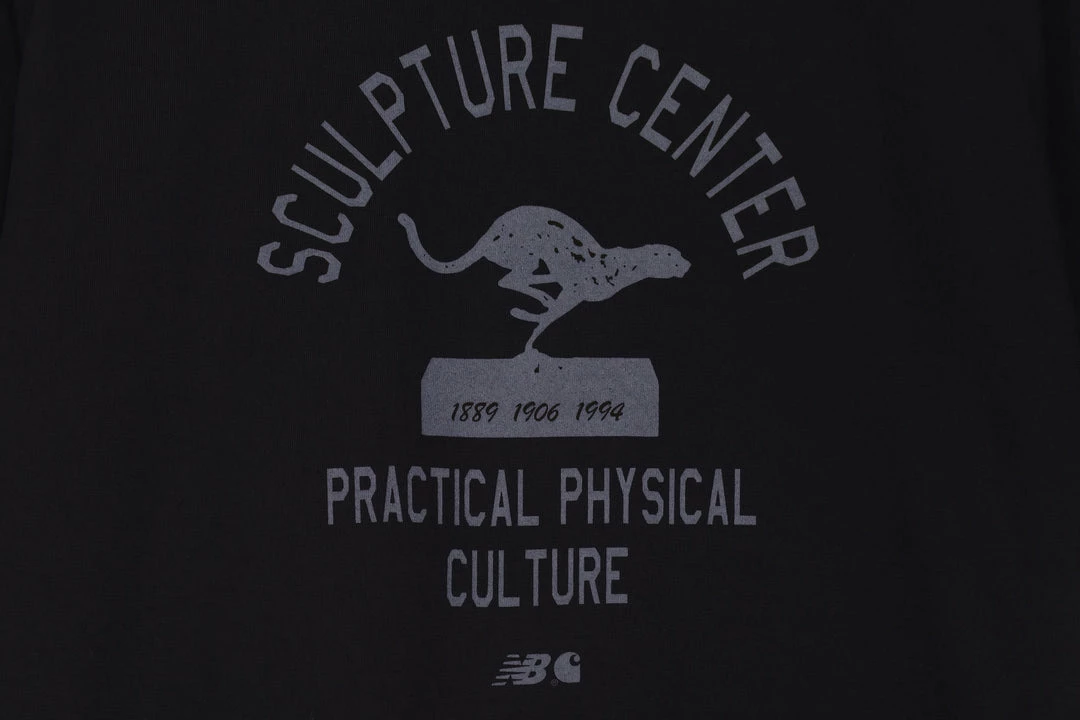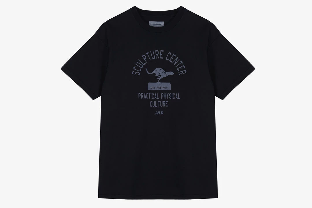 New Balance and Carhartt WIP have collaborated for the first time on a capsule collection that includes a reimagined version of the classic 990v1 sneaker silhouette, as well as a series of apparel and accessories. Titled the Sculpture Center capsule collection, it is inspired by no-frills, no-shortcuts neighborhood gyms. The resulting styles draw from a palette of dark blues and grays, as trophy motifs and collegiate-inspired typography feature throughout. Thisย tee is crafted using 100% cotton and features the collection’s graphic screen-printedย at theย centre of the chest. Finished with a woven neck seam label.