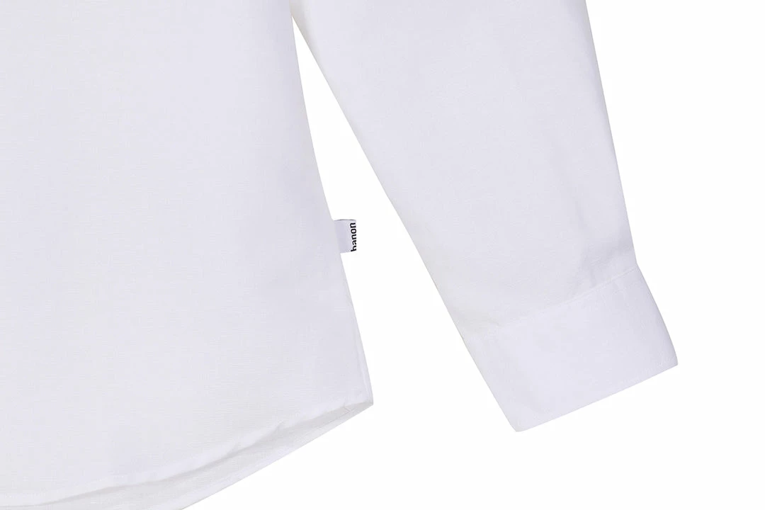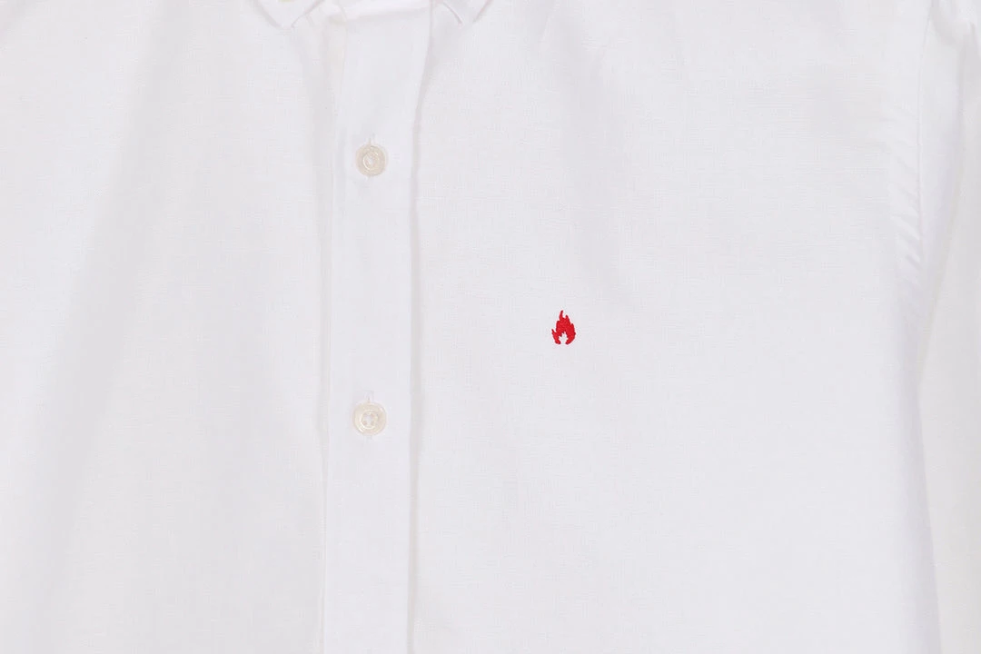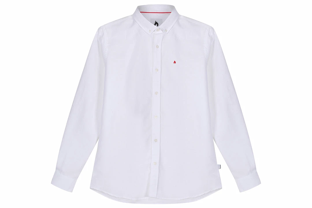 Crafted in Portugal from premium linen, thisΒ classic shirtΒ featuresΒ hidden zip side pocket with Hanon pearlescent shell buttons and embroidered Flame chest logo.