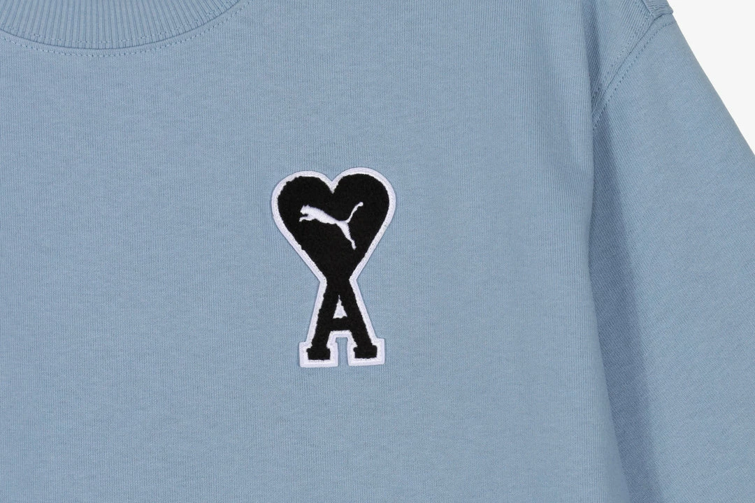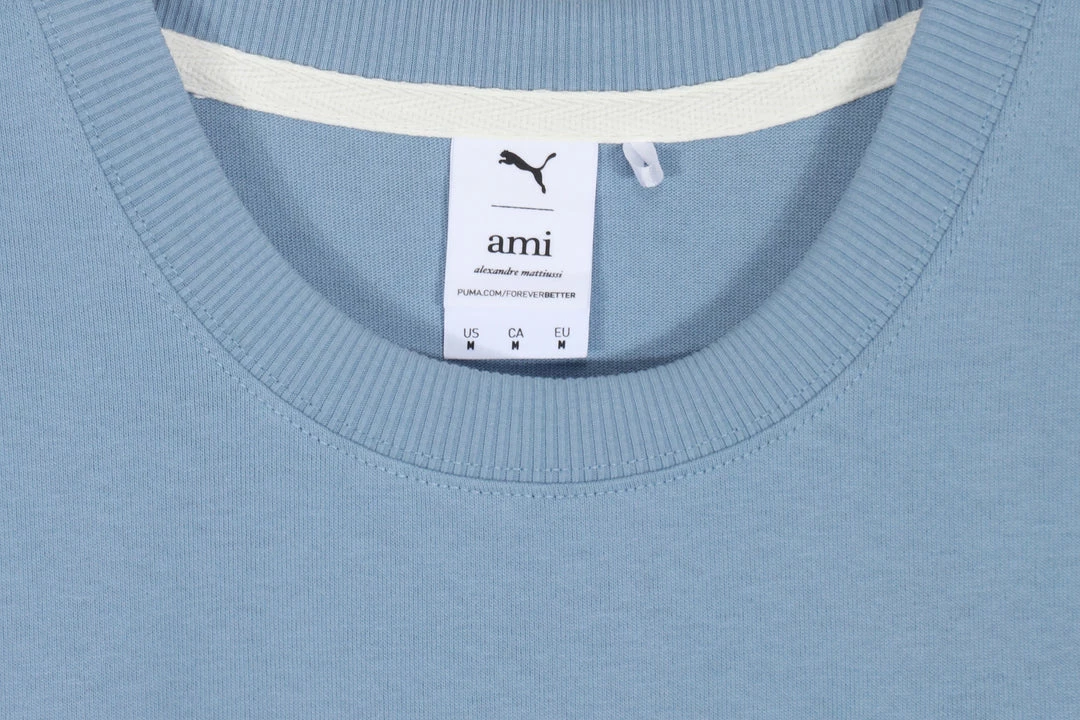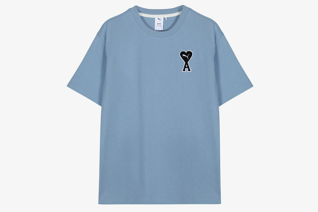 Parisian house AMI joins PUMA once again in a second chapter of collaboration. The new collection blends outdoor design elements with tailoring knowhow. Inspired by thirst for freedom and exploring new horizons, collection pieces mix PUMA’s sportswear heritage with AMI’s premium craftmanship, creating a line of elevated outdoor essentials. The Puma Graphic Tee x AMI features a relaxed fit 250gsm cotton with a chenille co-braded logo patch on the chest. Contains recycled material and made with recycled fibres. One of PUMA´s answers to reduce environmental impact.