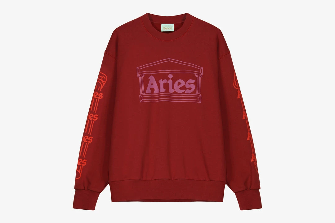 Aries is a non-gendered luxury streetwear brand with an artisanal and artistic approach to design and production. Born out of an ongoing love of trash culture, outsider art and illustration, collections also reflect Pranteraβs Central Saint Martinβs training and fascination with garment dyeing, printing and a forensic approach to garment construction. Here we have theΒ Aries Column Sweatshirt, a unisex crewneck sweat made from 100% cotton, brushed-back jersey fleece. Featuring a large Aries temple logo screen-printed at the chest as well as a column sleeve print.