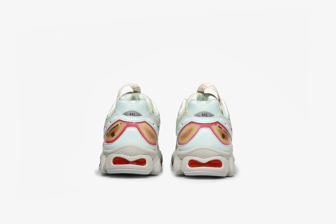 Another Asics model brought to life with the help of creative consultants from the Kiko Kostadinov Studio. TheΒ Asics UB5-S Gel-Nimbus 9 is an update of an archive silhouette, with hiking elements added to it for a more outdoors outlook from the running specialists. From an aesthetics standpoint, inspiration is taken from the galaxy in the colours selected by the studio.Β The upperβs layered mesh and synthetic leather panelling, paired with theΒ midsoleβs GELβ’ technology inserts in the heel and forefoot that are designed to increase shock absorption, make this shoe more adaptable for different surroundings. Finished with an elongated tongue loop.