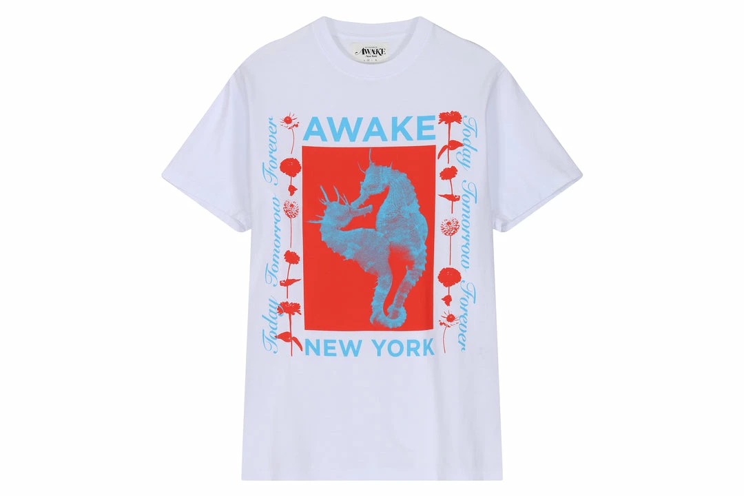 Launched in 2012, Awake NY captures the unique cultural spirit and sensibility of New York City. Awake NY is a reflection of the diversity that has defined the city’s cultural landscape. The “Seahorse tee” is a 100% cotton t-shirt with a large screen printedΒ romantic themed graphic on the front with the words “Today, Tomorrow, Forever.”