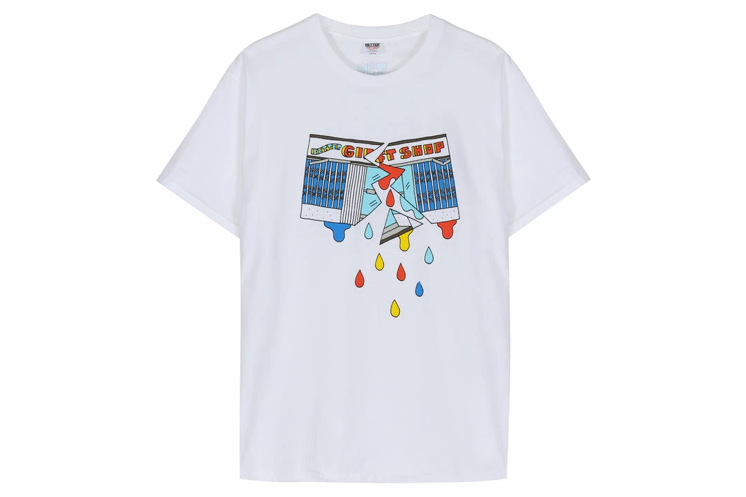 The “Betterβ’ Broken Gift Shop S/S Tee” features a colourful illustration of Betterβ’ Gift Shop’s Toronto store front broken in half. Screen printed on to the chestΒ of an all white 100% cotton tee.