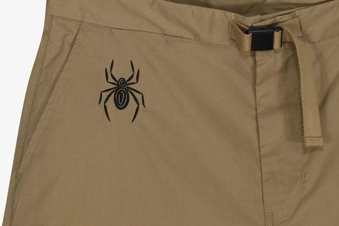 By Parra returns to Hanon for AW22, bringing their trademark graphic style straight from founder Piet Parra’s sketchbooks and canvases. Pastel hues of the classic By Parra colourways are a rejection of the cold weather to come.Β Β It’s always summer at Parra HQ. Expect bold lettering and Post-Pop graphics all round. These active shorts are made to be adaptable for any adventures that are to be had. The cotton and nylon blend gives them an extra stretch and breathability, in this sand colourway they will be agreeable with any outfit you put together. An in-built fastening system paired with pop button fastening makes these shorts easily adjusted for an extra element of comfortΒ throughout the day. By Parra add some of their personality into this garment with an embroidered spider graphic and a printed patch that has been stitched onto the front of the lower leg.Β
