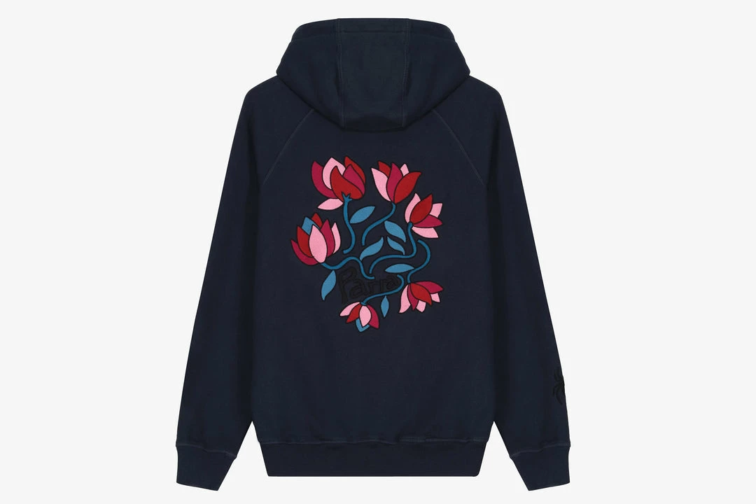 By Parra returns to Hanon for AW22, bringing their trademark graphic style straight from founder Piet Parra’s sketchbooks and canvases. Pastel hues of the classic By Parra colourways are a rejection of the cold weather to come. It’s always summer at Parra HQ. Expect bold lettering and Post-Pop graphics all round. Embroidery adorns both the front and back of this hooded sweatshirt. The Secret Garden theme continues with a bold array of flowers on the back, with the secret flower accompanying the By Parra logo on the chest. A fully loaded hoody for that extra bit of warmth in the transitional months.