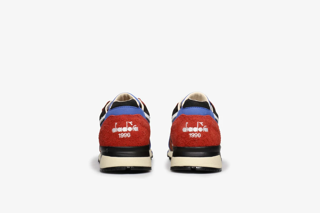 This N900 has been handmade in Italy using fine leathers and premium treatments to makeΒ it comfortable, functional and perfect for every look.Β Mixing dark & vibrant on thisΒ colourwayΒ Diadora opt for blue nubuck and redΒ hairy suede overlays that contrast the black body. A brilliant white DiadoraΒ logo slices through the side panel, with further branding arriving embroidered at the heel.Β