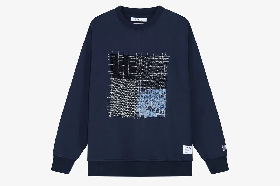 Hailing from Japan, a country renownedΒ for their gold standard denim, FDMTL have been producing bespoke denim goods since 2005. They champion the ethos of quality over volume of production, striving to make garments that can’t be easily reproduced on mass. A lot of their inspiration stems from the Boro patchwork technique that combines offcuts of denim as means of repair for a garment, creating a unique blend of differently aged patches of denim material. This garment carries the brand’s signature denim style into another wardrobe staple, the crewneck sweatshirt. An indigo dyed cotton is the backdrop for denim overlaid patches on the chest in the Boro patchwork style, with white stitching finishing the look. A small F patch on the left hand cuff is a subtle piece of branding, with a white woven label on the hem for a further nod to FDMTL.