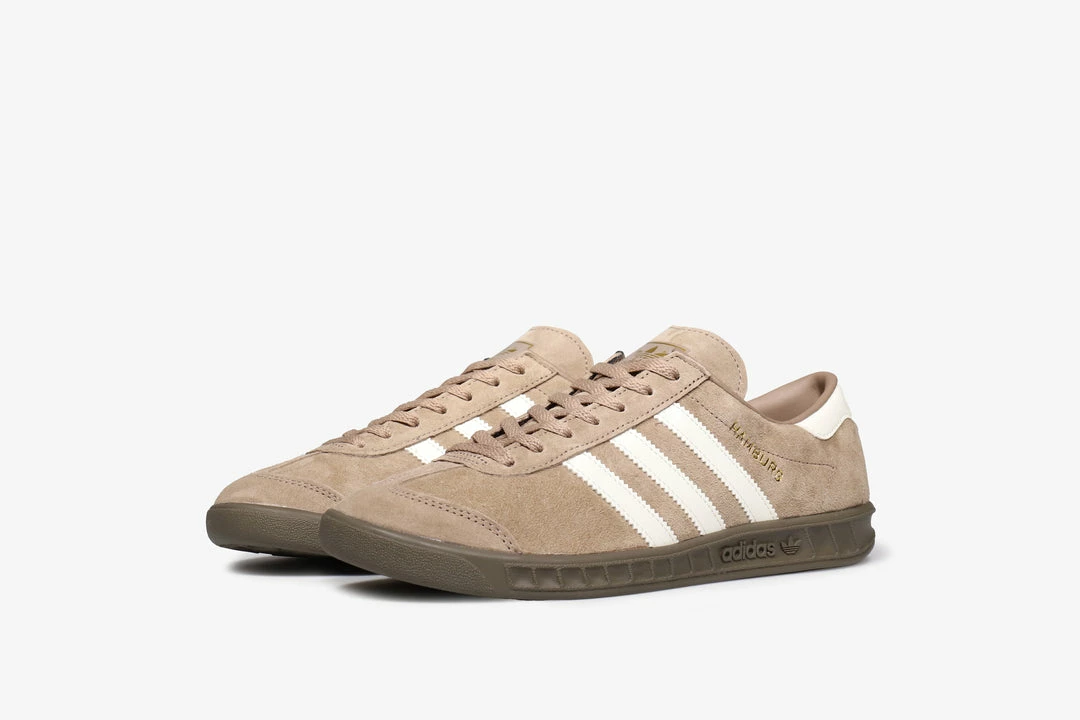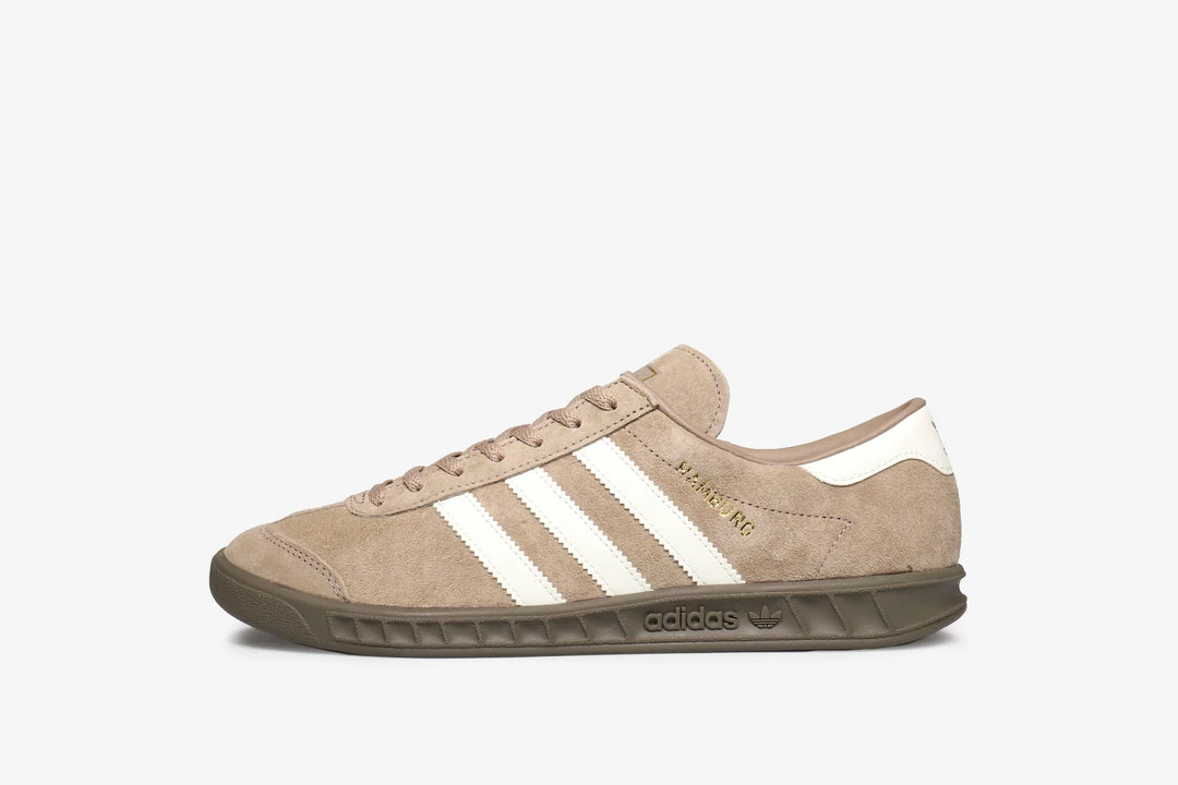 The Hamburg trainer hit the scene in ’82 as part of adidas’ iconic City Series. These shoes revive the classic design with aΒ suede upper and gum-rubber outsole. Serrated 3-Stripes and metallic-gold details keep the look authentic. Since entering the scene it has become a mainstay in casual culture and cemented its place as one of their best known silhouettes. ThisΒ release sees the suede upper in a “Chalky Brown” colourway thatΒ is as timeless as the shoe itself.