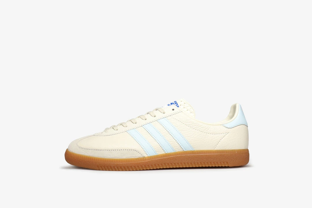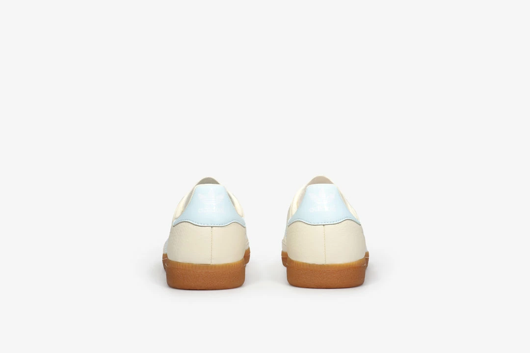 This latest edition to the adidas State Series puts a spotlight on “The Last Frontier” Alaska. A cream leather upper is paired withΒ a smooth grey suede “T-toe” overlay with light blue 3-Stripe branding and heel tabs for an ice cold finish. Mountain imagery on the tongue as well as reversible footbeds enhance the beauty of this shoe and the classic gum rubber outsole completes the look.Β