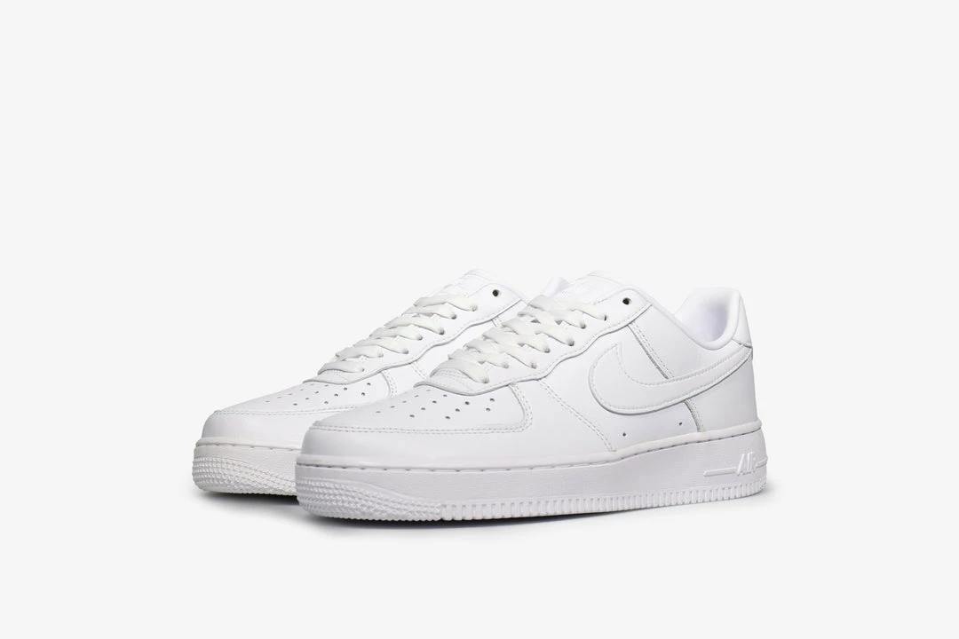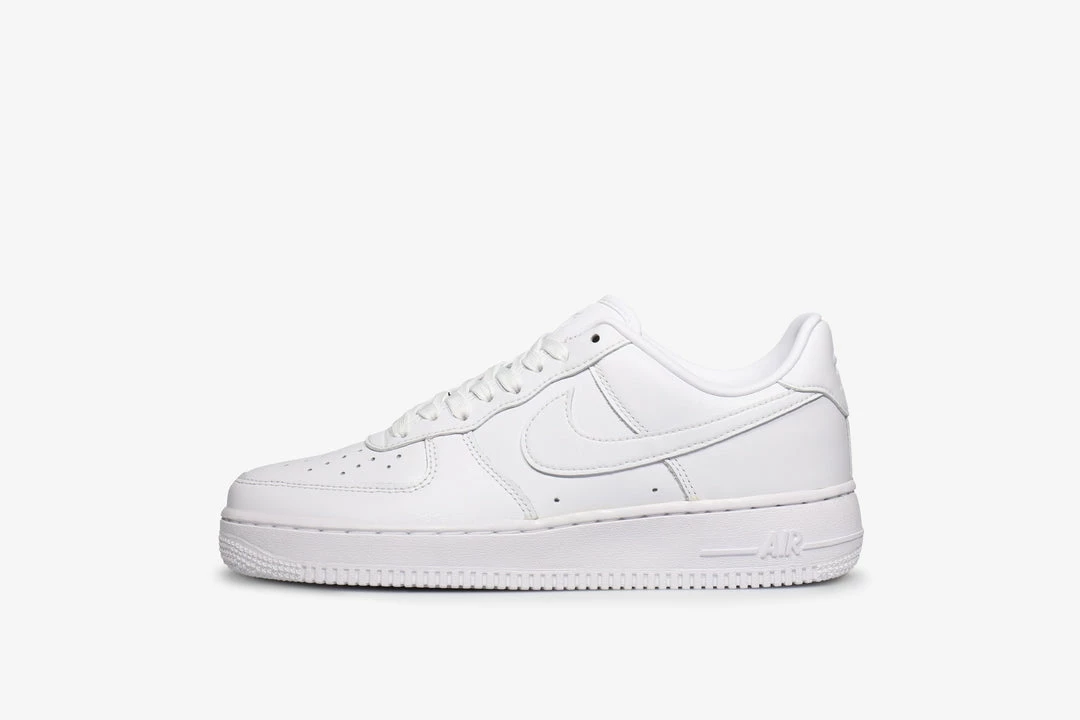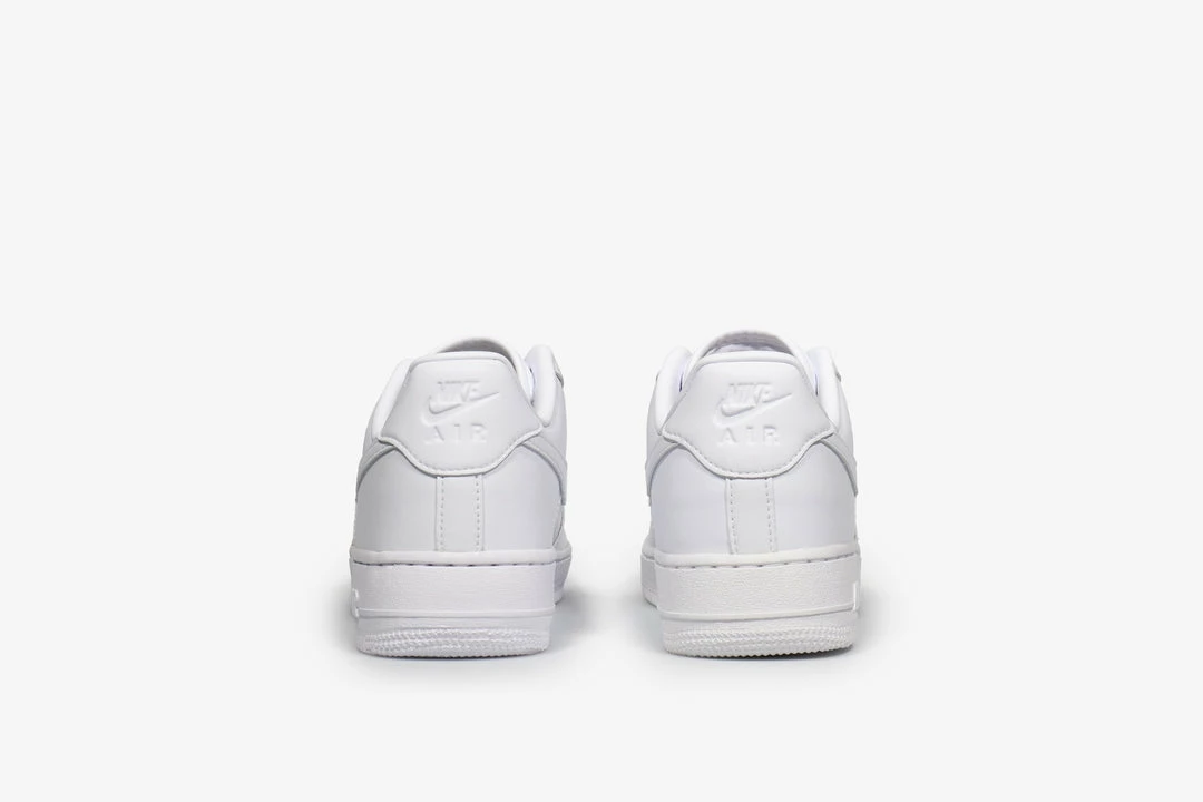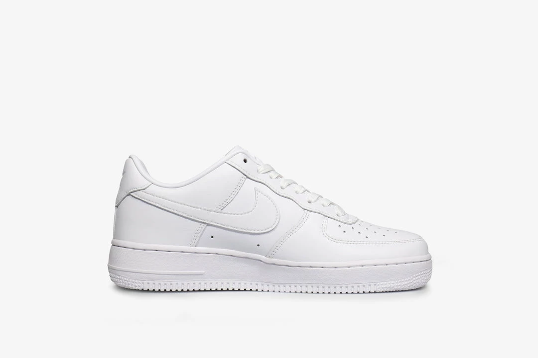 The all white AF1 in all it’s glory. A soft, textured leather helps conceal creasing and is easy to clean. The debossed branding, which replaces the woven label pairs withΒ pristine perforations for a crisp, clean look. Nike Air cushioning in the sole unit stands the test of time and aΒ perforated sockliner keeps it airy and breathable.