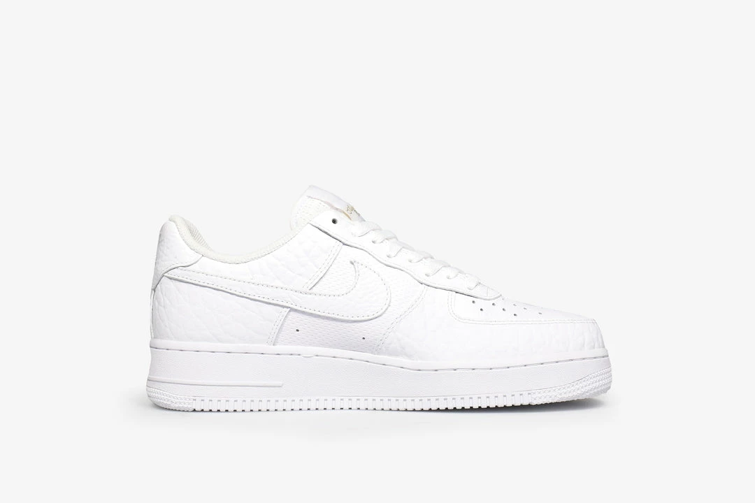 Celebrating 40 years of the AF1 with white and gold. These kicks are a homage to the original, but done up in layers of luxury. Textured-reptile leather on the upper creates a unique look and feel. The anniversary tongue is a special treat, just like the subtle stitching across the Swoosh that represent 4 decades of greatness.