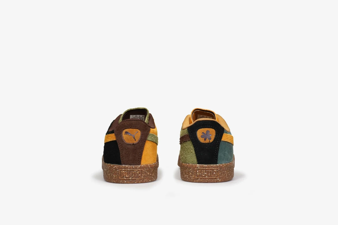P.A.M. are back with another collab this time with the big cat Puma.ย Established in Melbourne in 2000, Perks and Mini (also known as PAM) creates cutting-edge streetwear pieces that fuse art, fashion, and graphic design. The first-ever Puma x PAM collaboration features colourful, outdoor-inspired silhouettes ready for endless exploration. The Suede VTG model gets given a vibrant colour blocking on theย texture-richย suede upper. Collaboration branding can be found on the woven tongue label as well as printed above the formstrip and at the insole. The usual Puma heel logo on the right shoe has been replaced with PAM’s flower branding for a totally uniqueย finish.ย