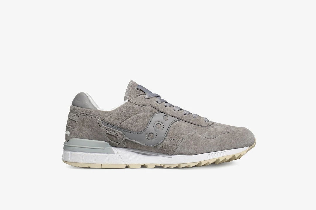 Originally finding its way onto the feet of serious runners in the late 1980s the Saucony shadow 5000 returns. The usual thick performance mesh body is swapped out on thisย pair for an entirely soft grey suede upper. Comfort continues to be key for these runners with a soft lining that hugs your foot and a shock absorbing EVA midsole below that cushions every step.