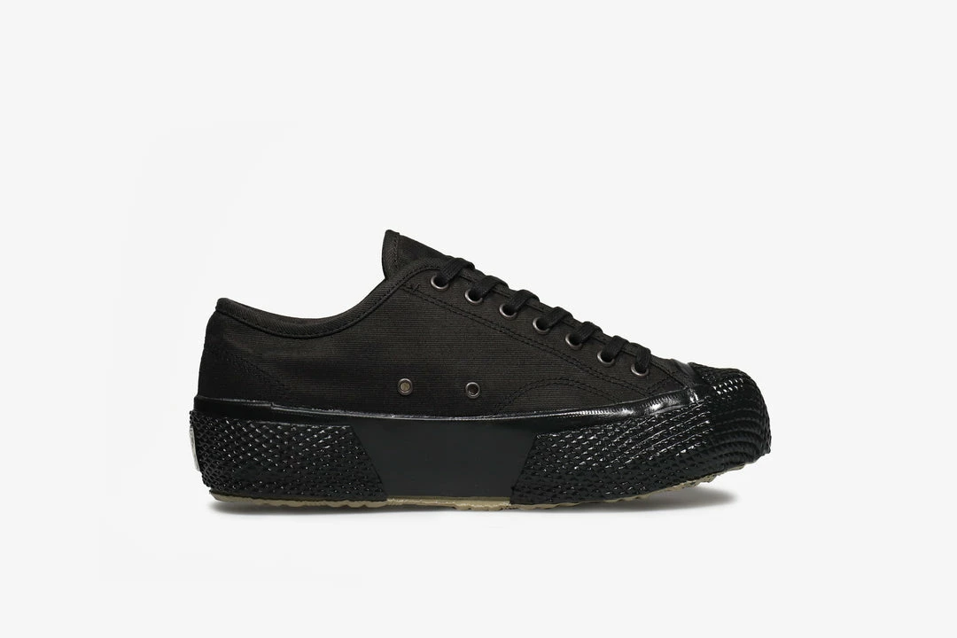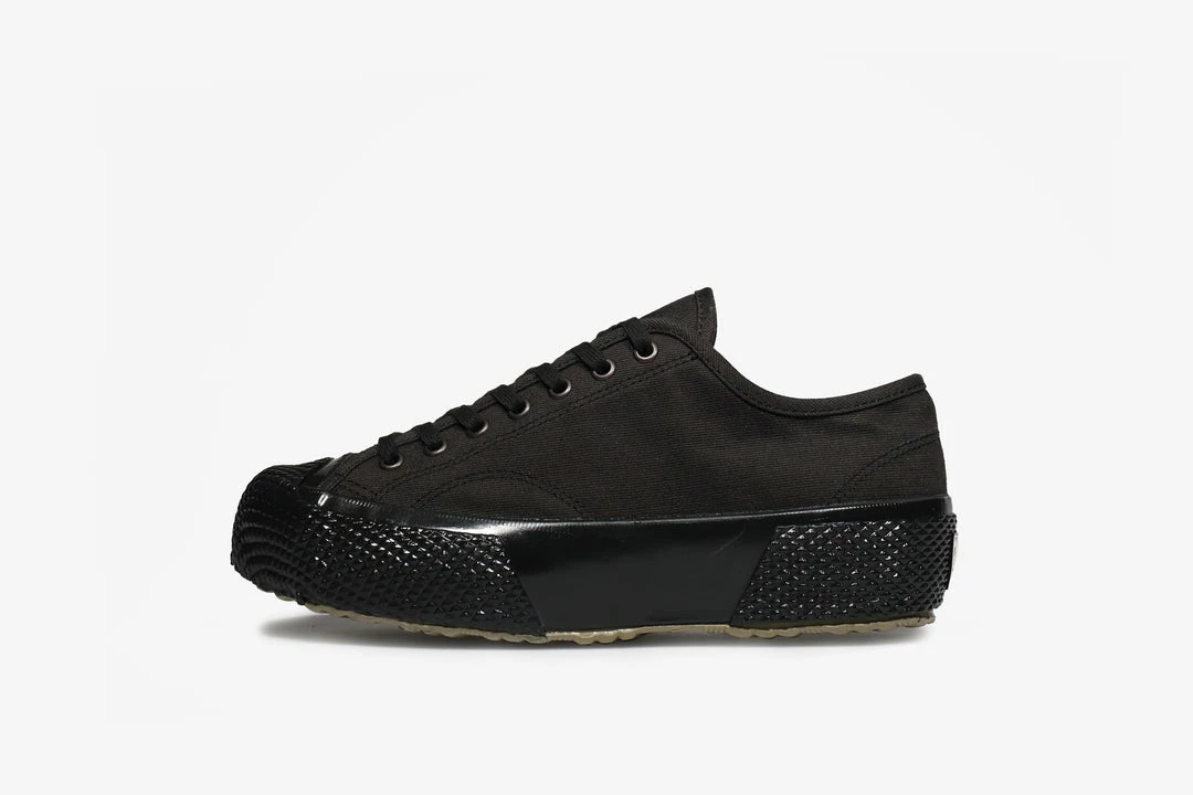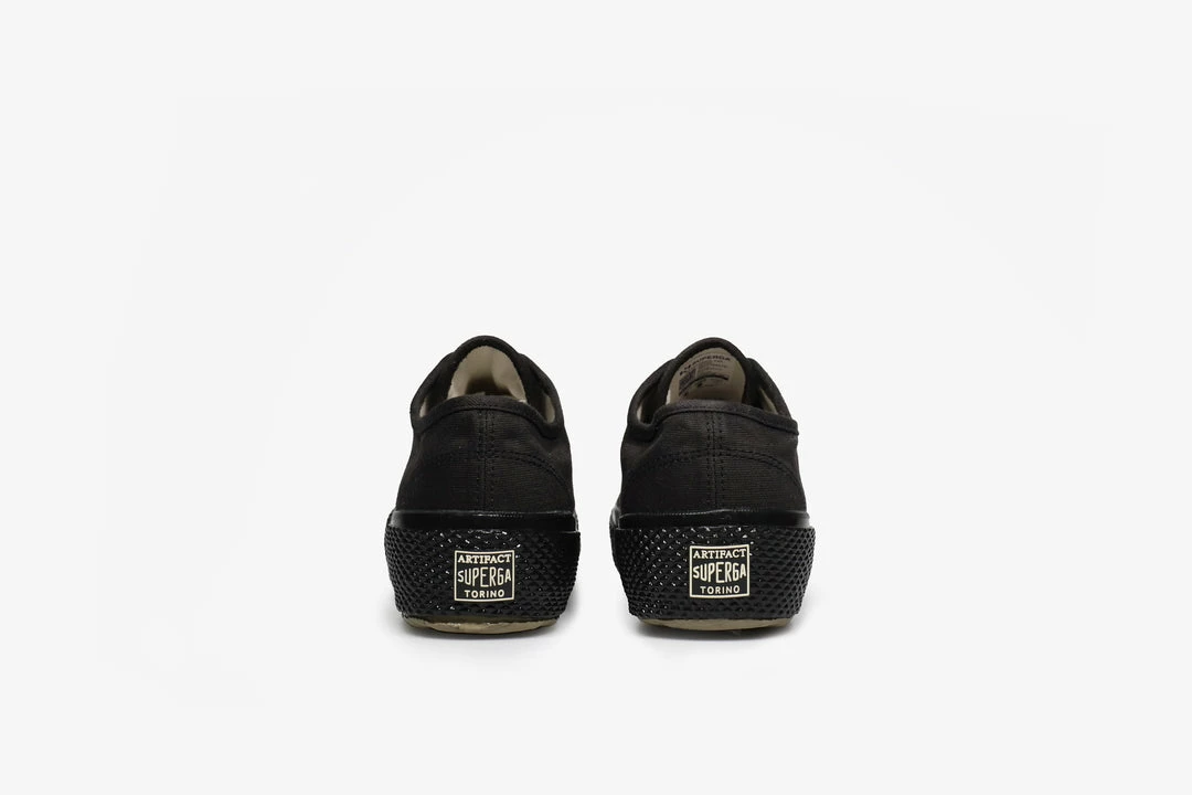 Over a century old, Superga continue to produce high quality footwear that is as versatile as it is stylish. Vulcanised sole units & premium upper materials are just some of the ingredients to their successful design formula. This pair of blacked out low-tops come in a reinforced cord cottonย weave upper that is made to stand the test of time, paired with a blacked out vulcanised sole unit that reinforces the ruggedness of the shoe.ย Metal eyelets add an extra hardwearingย elementย to the shoe, makingย themย equippedย for heavy use.