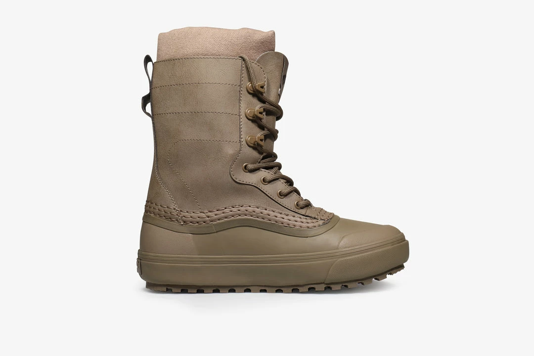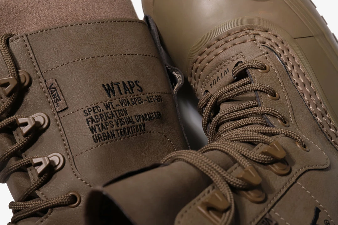 Military gear is the primary source of inspiration for Tetsu Nishiyama’s brand WTAPS, which has been championing the aesthetic for decades now. Vans Vault have yet again linked up with the Japanese streetwear brand for a collaboration merging both militaria and skate culture.Β ThisΒ second drop takes inspiration from the cold weather season and the deep love of snowboarding shared by both brands. Featuring monotone, earthy hues influenced by military styling and direction. TheΒ Standard Snow MTE boot comes with a treated synthetic nubuck upper and custom WTAPS branding embroidered at the ankle. Heel pulls,Β insulated interior andΒ a sturdy rubber sole unit make these boot ready to tackle even the harshest conditions.