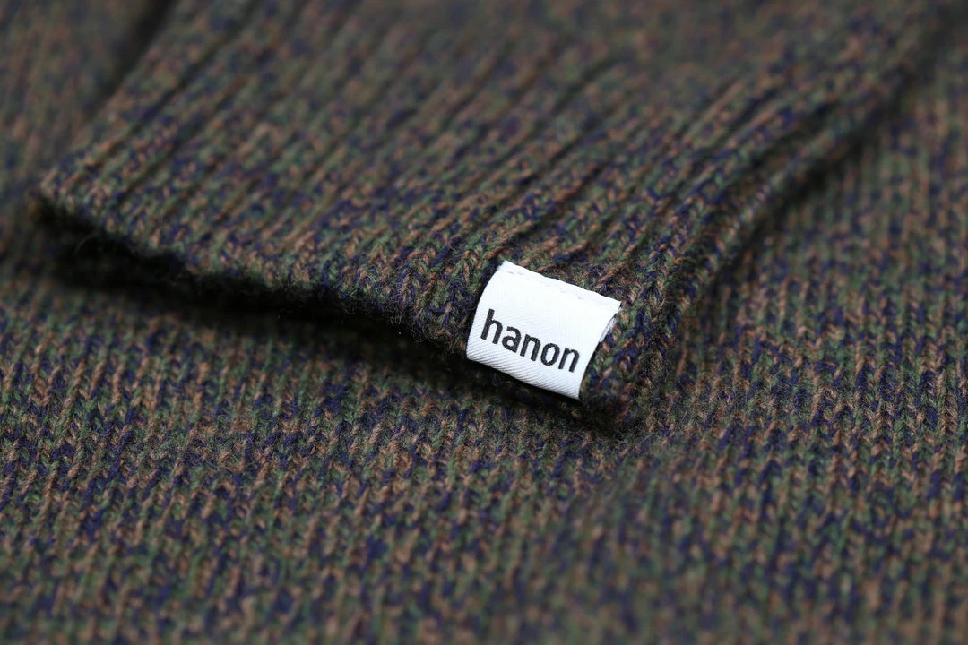 The HANON Army Wool Knit inΒ “Green MoulinΓ©” isΒ made in Portugal from soft Italian wool and features an embroidered chest flame logo, cotton twill elbow and shoulder patches that dial in the military surplus vibes, whilst a ribbedΒ neck, sleeves, and hemlines sign things off.