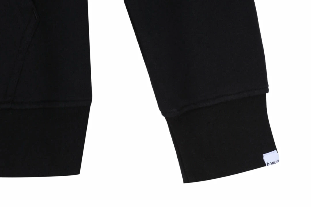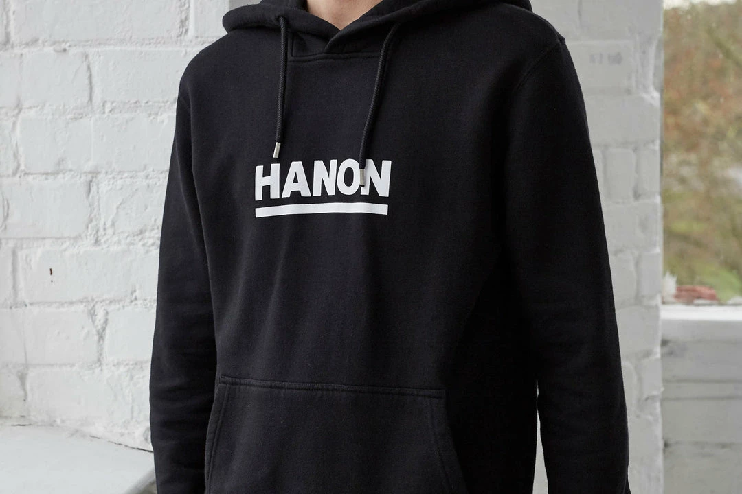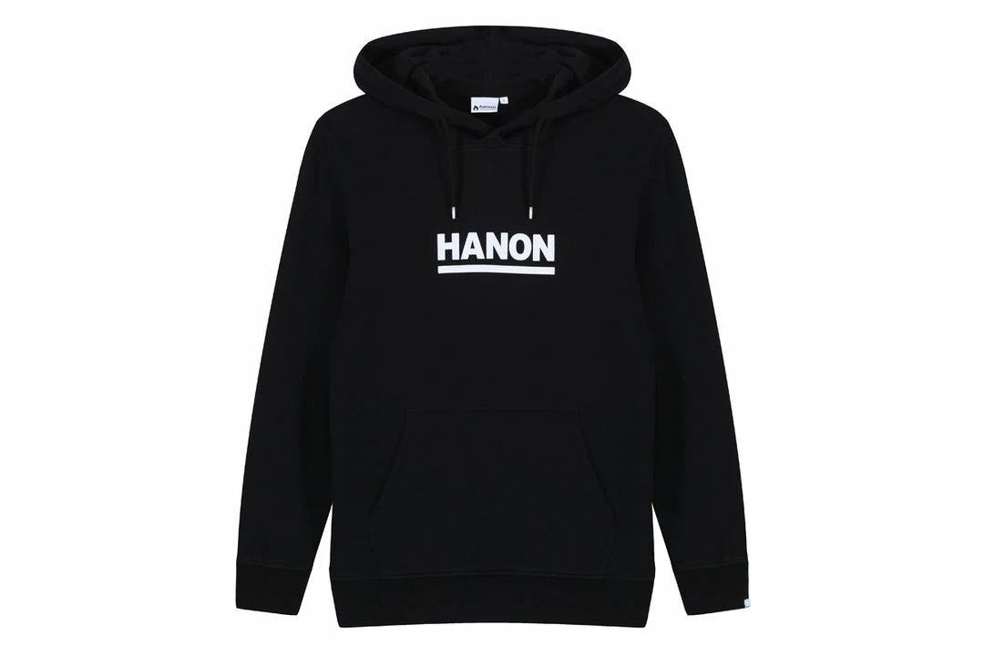 Crafted in Portugal from premium 100% brushed cotton, this Hooded Sweat features Hanon printed bar logo. Concealed phone pocket in kangaroo pouch.