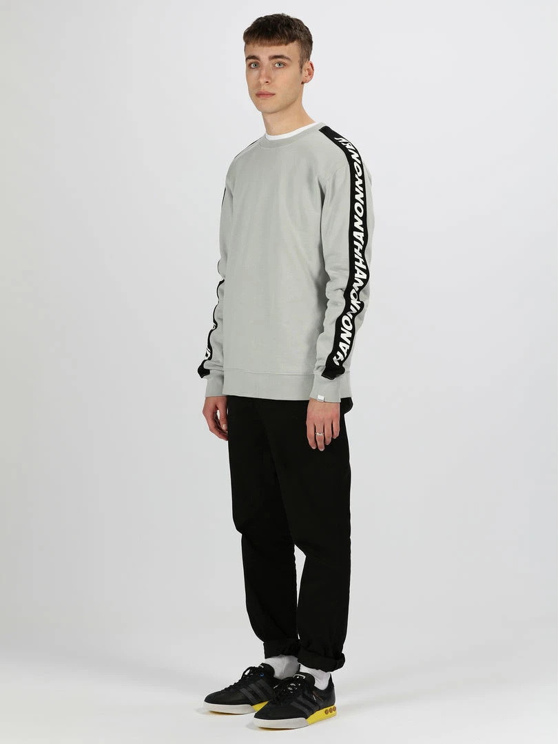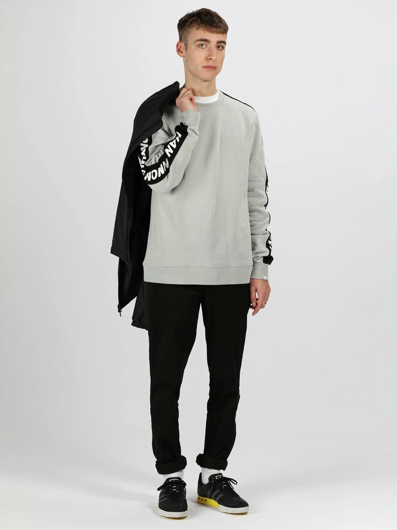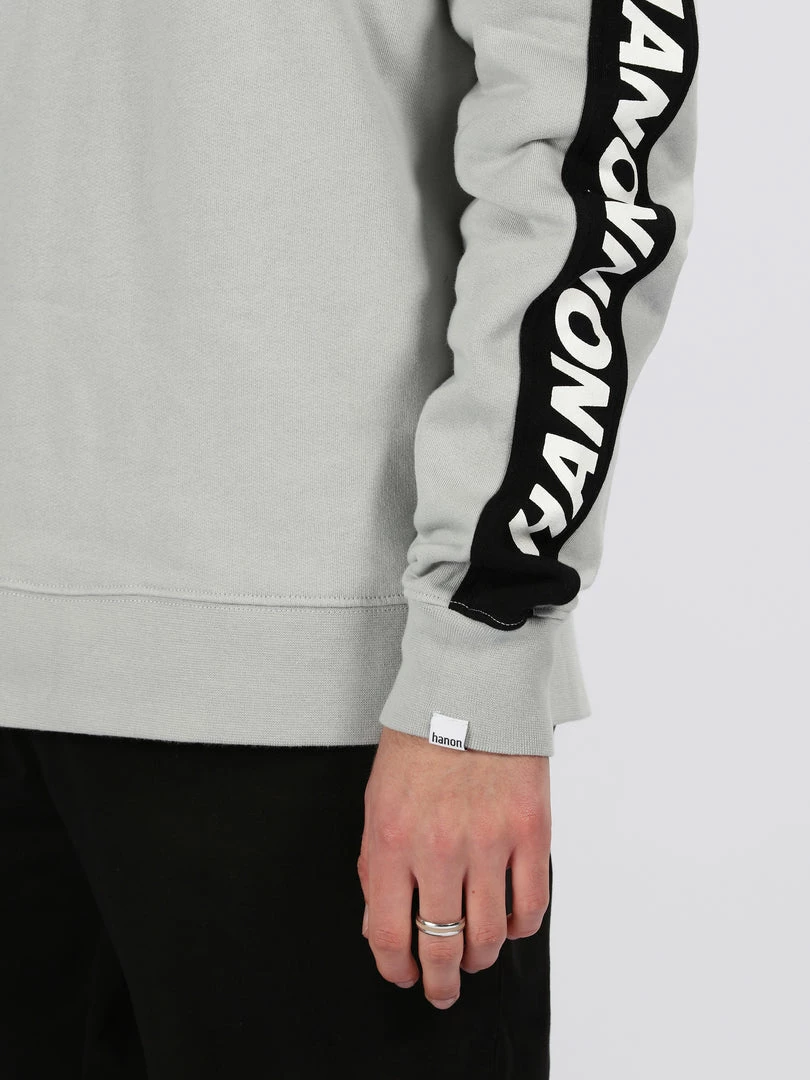The HANON Calvert Sweatshirt in Pearl Blue is crafted in Portugal using 320gr cotton fleece and features a full-length HANON printed sleeve panel in contrasting Black.