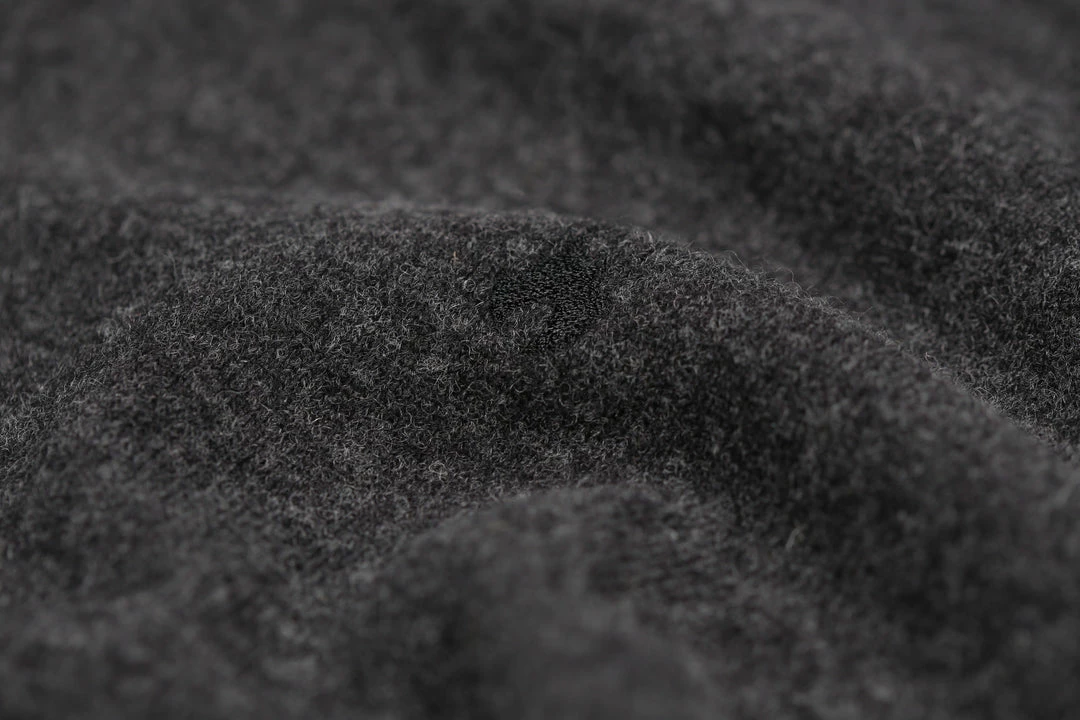 The HANON Classic Wool Knit in “Dark Grey Melange” is made in Portugal from soft Italian wool featuring an embroidered chest flame logo, ribbed neck, sleeves and hemline. A woven HANON clip label on the sleeve signs things off.