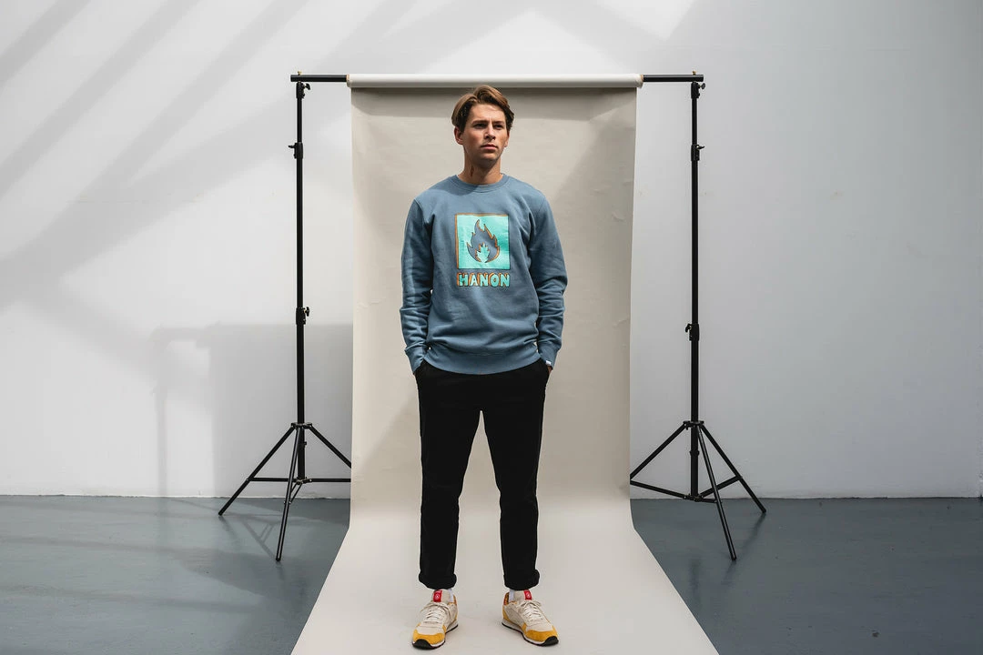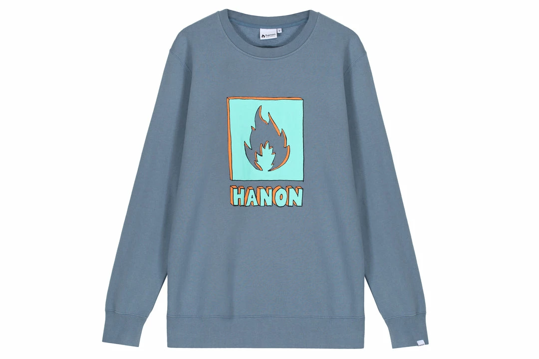 For Autumn/Winter ’18 our HANON collection returns, comprised of staples such as the Flame Badge series across t-shirts, sweats and hoods. Our Woven Shirt program also makes a welcome return with a distinctly autumnal palette, as well as a new range of graphics offered on a fresh selection of colours for the season. Here we have the HANONΒ Crayon Shade Box Logo Sweatshirt inΒ Raf Blue with a printed graphic onΒ the front. A woven HANON label on the cuff completes matters.