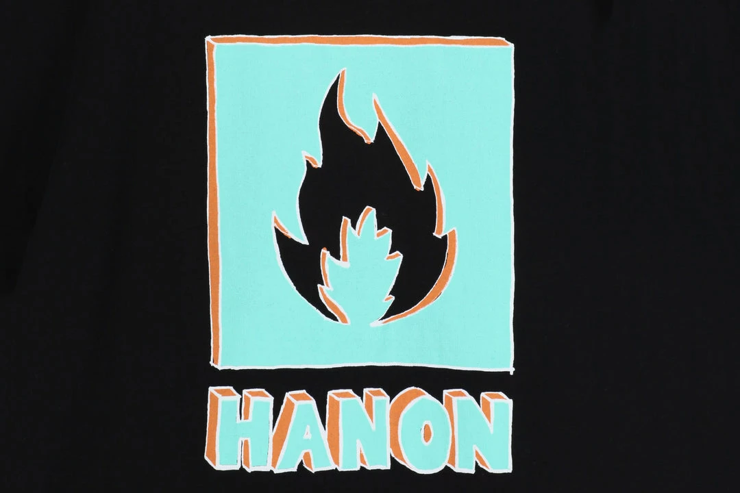 For Autumn/Winter ’18 our HANON collection returns, comprised of staples such as the Flame Badge series across t-shirts, sweats and hoods. Our Woven Shirt program also makes a welcome return with a distinctly autumnal palette, as well as a new range of graphics offered on a fresh selection of colours for the season. Here we have the HANONΒ Crayon Shade Box Logo tee inΒ Black with a printed graphic onΒ the front. A woven HANON label on the arm completes matters.