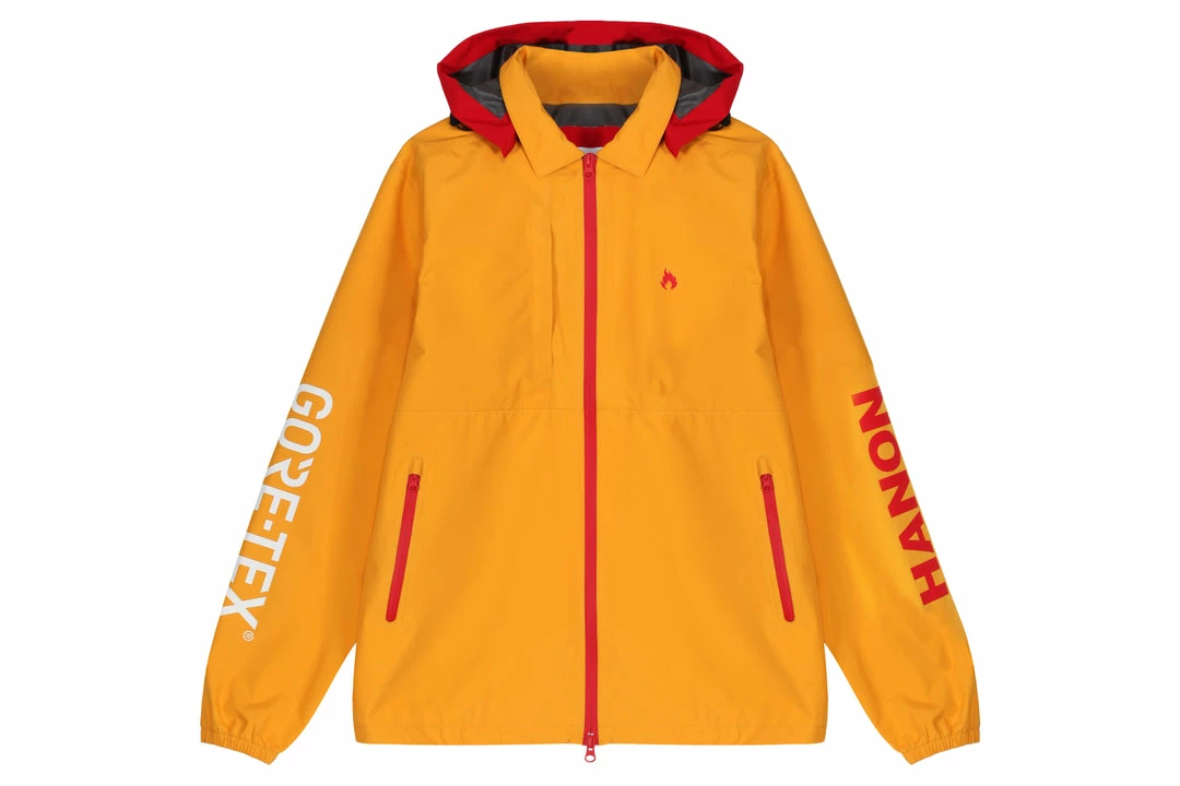 For Autumn Winter 18 we debut our Coach Jacket as part of our Gore-Tex Research Project. Produced from Gore-tex’s Paclite technology offering an lightweight construction that keeps out you cool in demanding activities and warm when the temperature cools. Offered here in a Golden Yellow & Red makeup with taped seams and zips. HANON & Gore-Tex branding appears via a heat transfer on the arms and via woven labels in the lining. A detachable hood and elasticated cuffs ensure comfort and versatility.