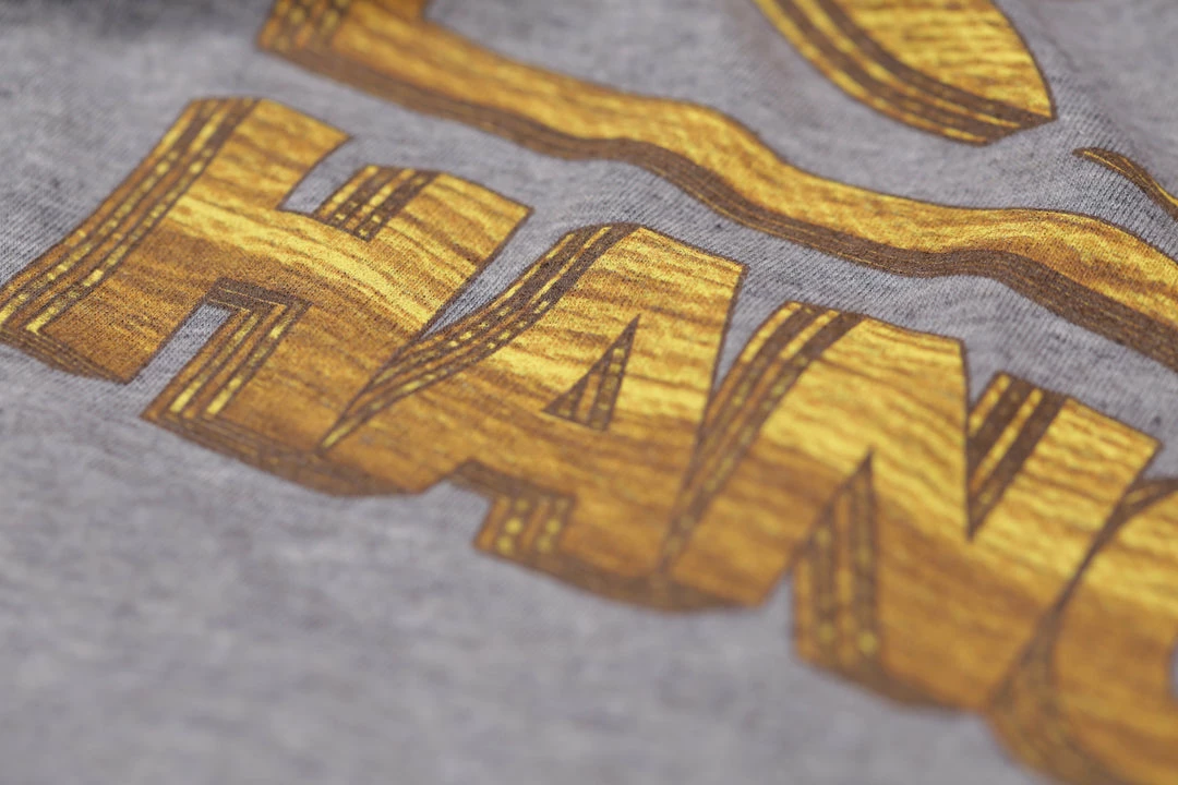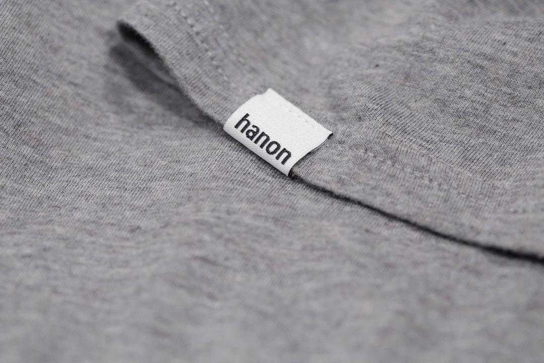 The HANON Plywood Tee in Grey Melange is Made in Portugal using 160gr cotton jersey and features our Plywood box logo graphic printed large on the chest.