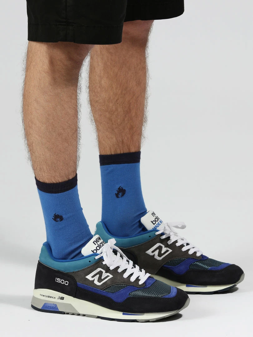 The HANON Tupack Sock is crafted in Portugal with woven HANON branding, and comes in a double pack which features a solid colourway with contrast rib, heel, and toe, and also a striped colourway with contrasting stripes.