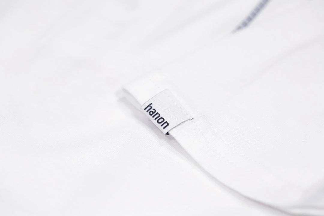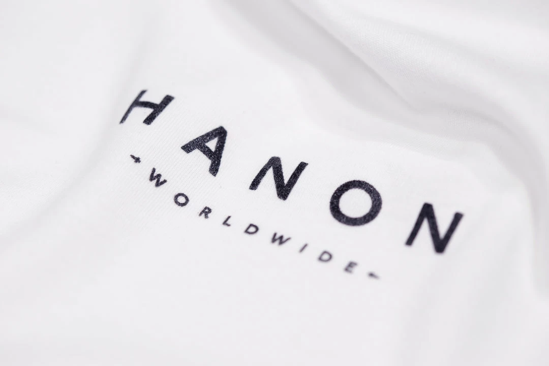 The HANON Worldwide Tee in White is Made in Portugal using 160gr cotton jersey and features our minimal Worldwide graphic printed small on the centre of the chest.