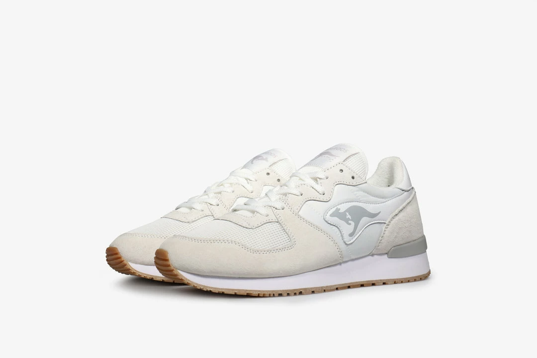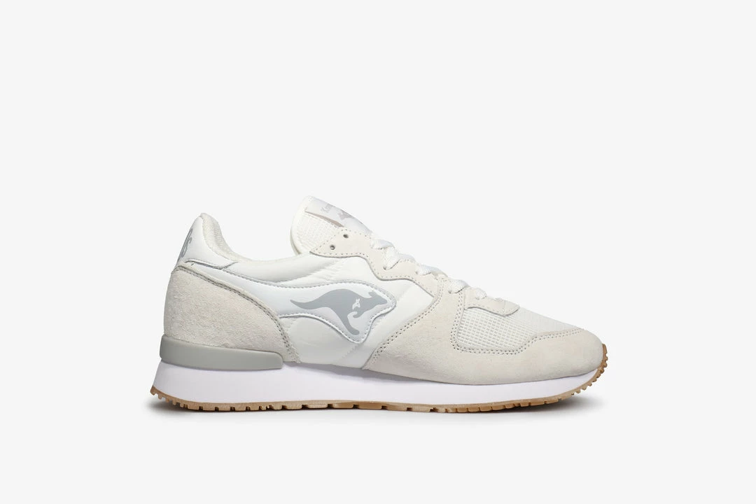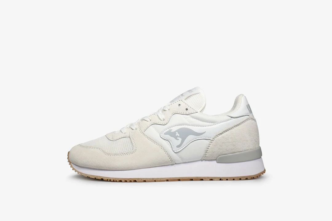 Using a mixture of premium leather, suede, nylon and mesh, the KangaROOS Aussie lets it’s material make-up do the talking. The “Mono” colourway keeps it classy allowing the texture to break upΒ the form. All the signature ROOS finishes are there, like the breathable Ortholite insole technology, EVA midsole that cushions with confidence and the woven tongue label complete with a secret pocket.Β
