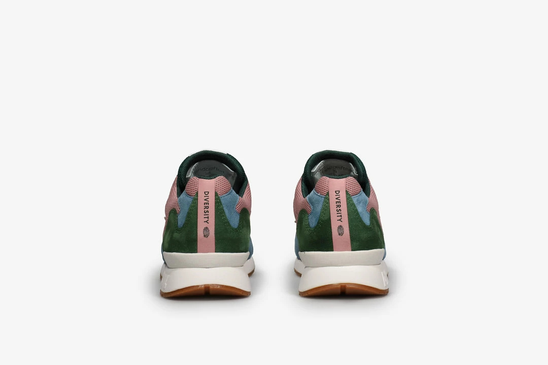 The concept of diversity encompasses acceptance and respect. It means understanding that each individual is unique and recognizing our individual differences. This Coil R2’s upper is crafted using a pastel pink mesh with green & blue suede overlays that complete the silhouette. The heel features the word “Diversity” with a fingerprint to signify the celebration of differences. DYNACOIL cushioning in the sole unit supplies on the go comfort. Finished in true KangaROOS style with a secret tongue pocket. Limited to 250 pairs.