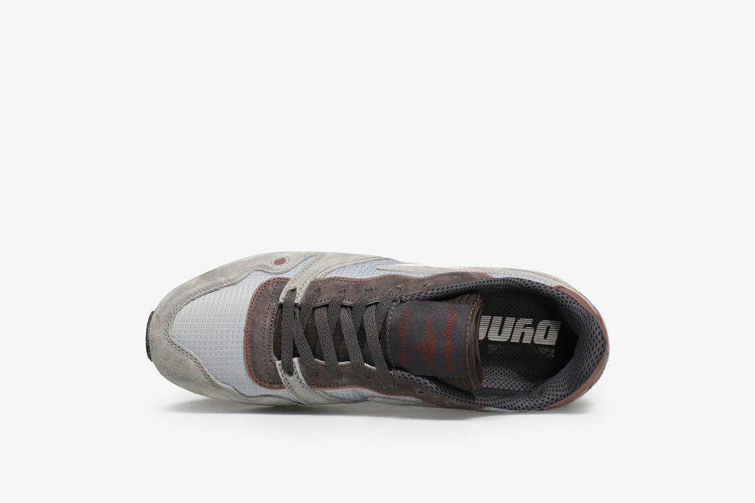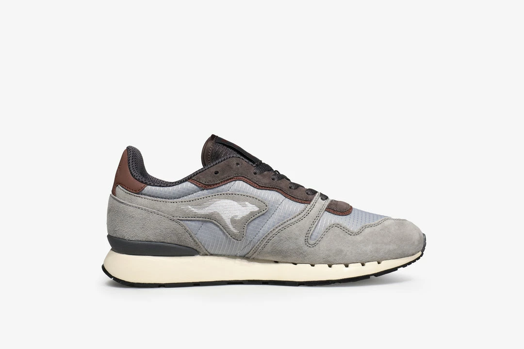 The Coil RX returns from deep within the KangaROOS archive to prove it’s comfort, durability and style deserved a come back. The durable nylon & suede upper on this pair feature an understated grey and brown colourway with leather accents that enrich the texture of the shoe.Β Below foot theΒ DYNACOIL cushioning system provides maximum comfort al day long.Β Finished in true KangaROOS fashion with a secret stash pocket behind the tongue.