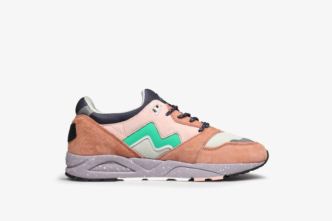 Karhu release the “Northern Lights” pack featuring spectacularly vibrant uppers that replicate the awe of the natural light display. The Aria 95, known for its mono-sock construction, is decked out in a mix of suede, lycra and mesh as well as featuring the iconic branding on the tongue. Below foot a thick EVA midsole takes care of comfort and a rubber outsole supplies reliable traction.