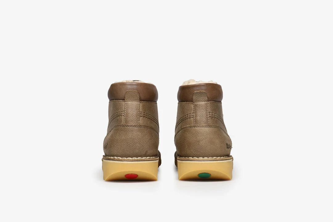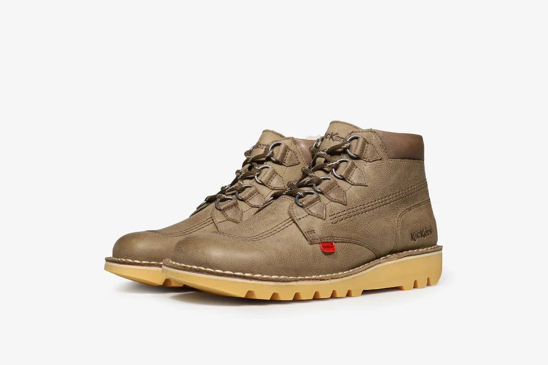 The Kickers Kick Hi gets primed for the outdoors featuring quality leather uppers with classic triple-stitch detailing and an ultra cosy woolly lining for ultimate heat insulation. The trademark Kickers rubber soles are hardwearing with standout style and the metal D-eyelets and thick rope laces enhance this boot’s durability. The suede will age naturally over time to create a very special pair of Kicks to add to your collection.