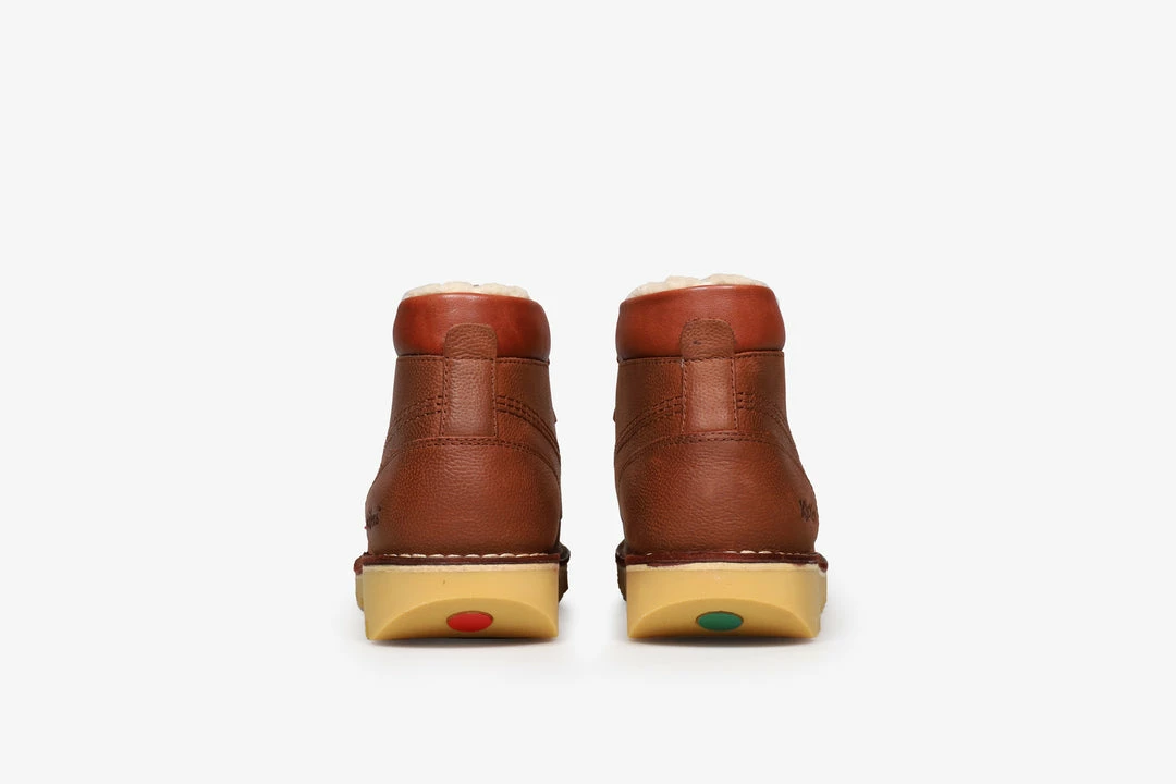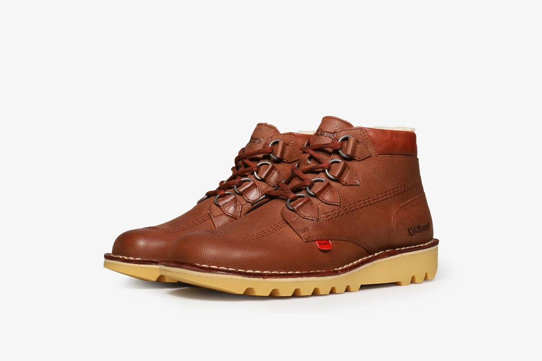 The Kickers Kick Hi gets primed for the outdoors featuring quality leather uppers with classic triple-stitch detailing and an ultra cosy woolly lining for ultimate heat insulation. The trademark Kickers rubber soles are hardwearing with standout style and the metal D-eyelets and thick rope laces enhance this boot’s durability. The suede will age naturally over time to create a very special pair of Kicks to add to your collection.