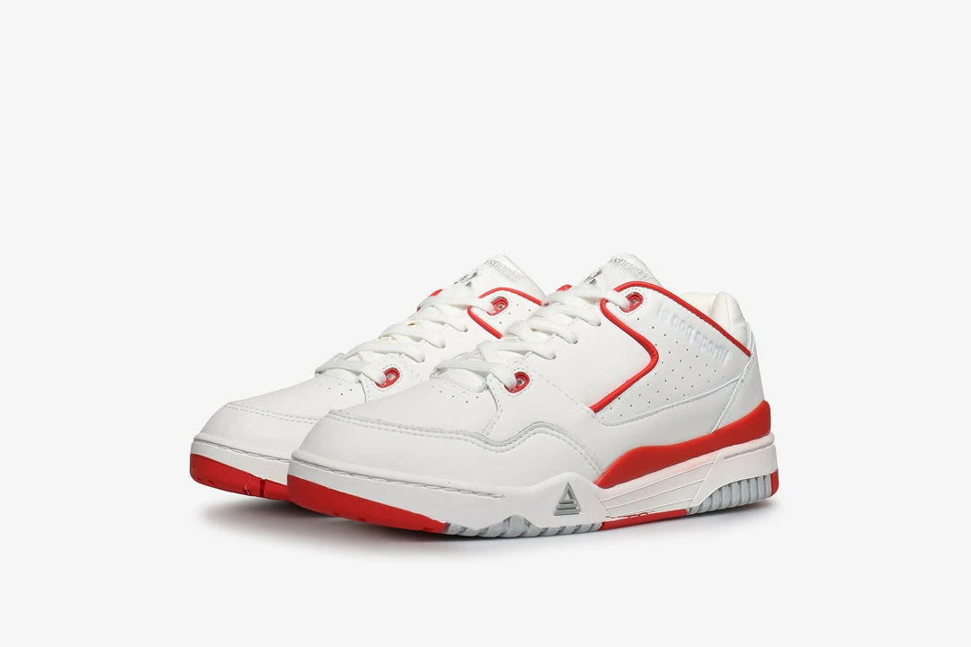 The LCS T1000 was first released at the beginning of the 90s, and much like its fictional namesake from one of the decade’s biggest films it too was an unstoppable weapon on the court. For Summer ’22, the classic style is modernised and arrives in white leather make-up, complimented by red accents, and retains its multitude of overlays. Perforated detailing features on the vamp and on the rear quarter, while a slightly shiny retro-effect mesh appears on the tongue. The sole unit is made up of EVA pods for better comfort and an optimal stride, and like all the running shoes that make up the LCS R franchise, the pods are located at the back for cushioning, as well as at the front of the model for the foot propulsion. The shoe is finished with Le Coq Sportif branding embroidered on the tongue, printed on the sock liner, and debossed on the side.