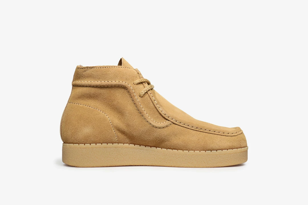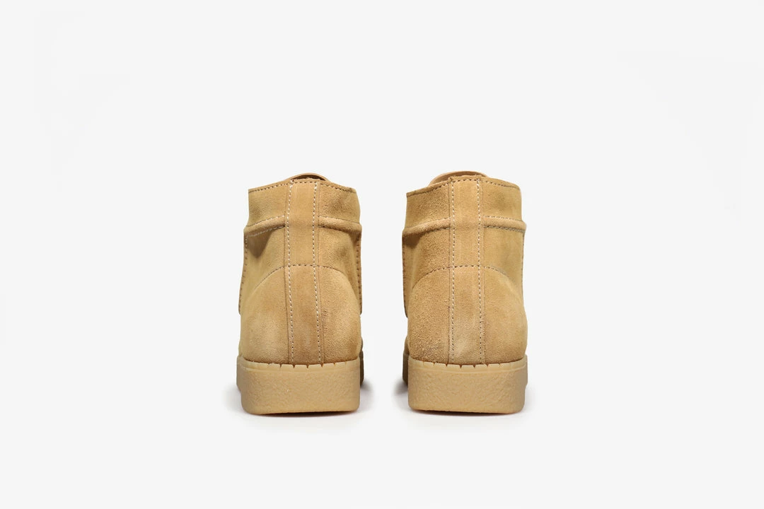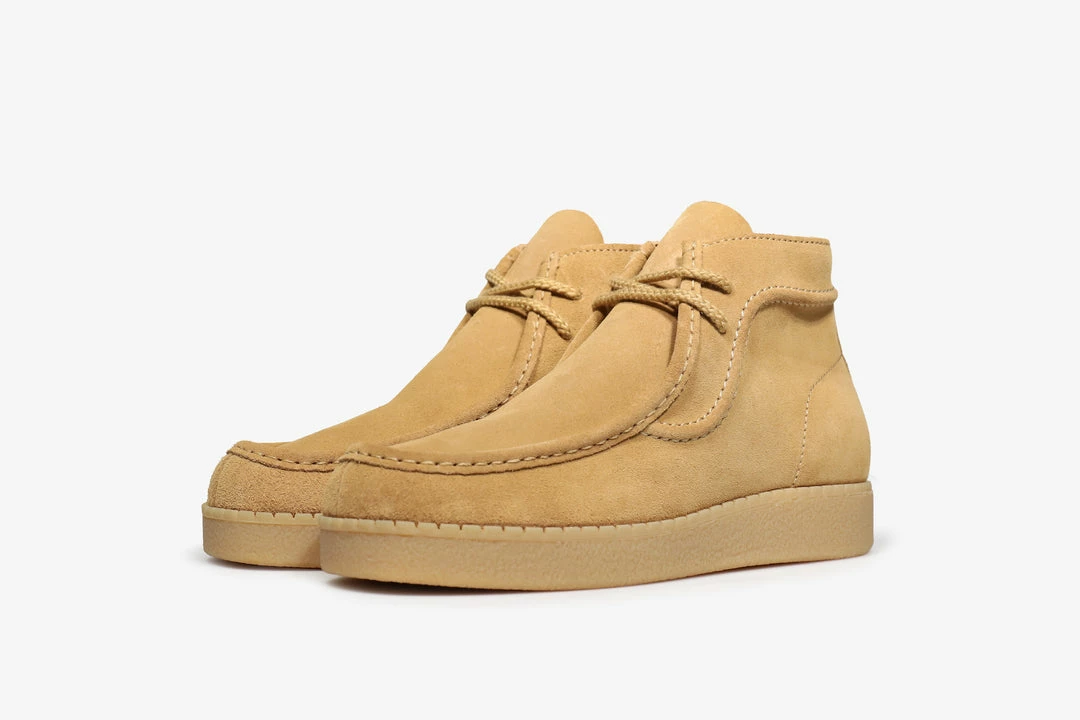 World renowned denim craftsman Levi’s have been ever expanding their portfolio of offerings, with shoes becoming another facet of the brand’s operations around 1975. The RVN, or Raven, is a hardwearing leather boot that is made to wear with anything and comes in a versatile tan suede which hails from the Steads factory in the UK. An orange tab, a nod to the 70s era of Levi’s, is placed on the lateral side of the boot. A durable rubber outsole completes this classic piece of 70s nostalgia.