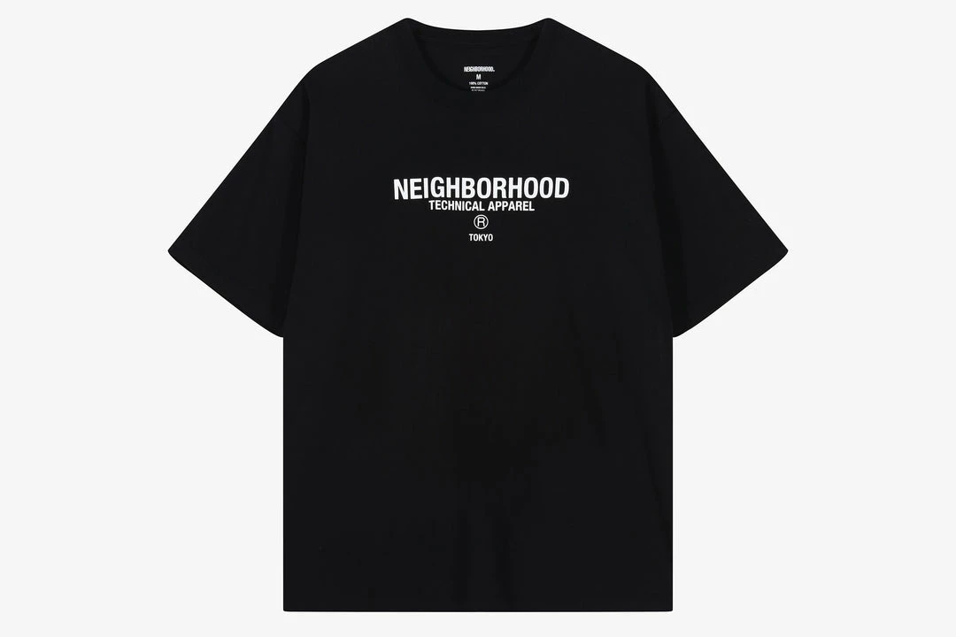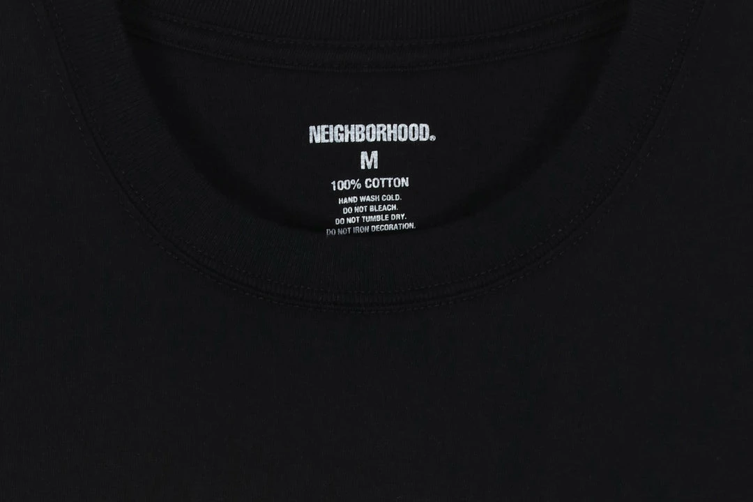 Japanese brand Neighborhood returns to Hanon with their highly anticipated Autumn/Winter 2022 collection. The latest collection features a variety of garmentsย including graphic tee’s which use their signature slightly gothic graphic style. Part of their Autumn/Winter 2022 collection, this boxy cotton tee has a minimal approach with the classis Neighbourhood script logoย with supporting text printed across the chest. Clean and distinct style from Japan’s streetwear giants.ย